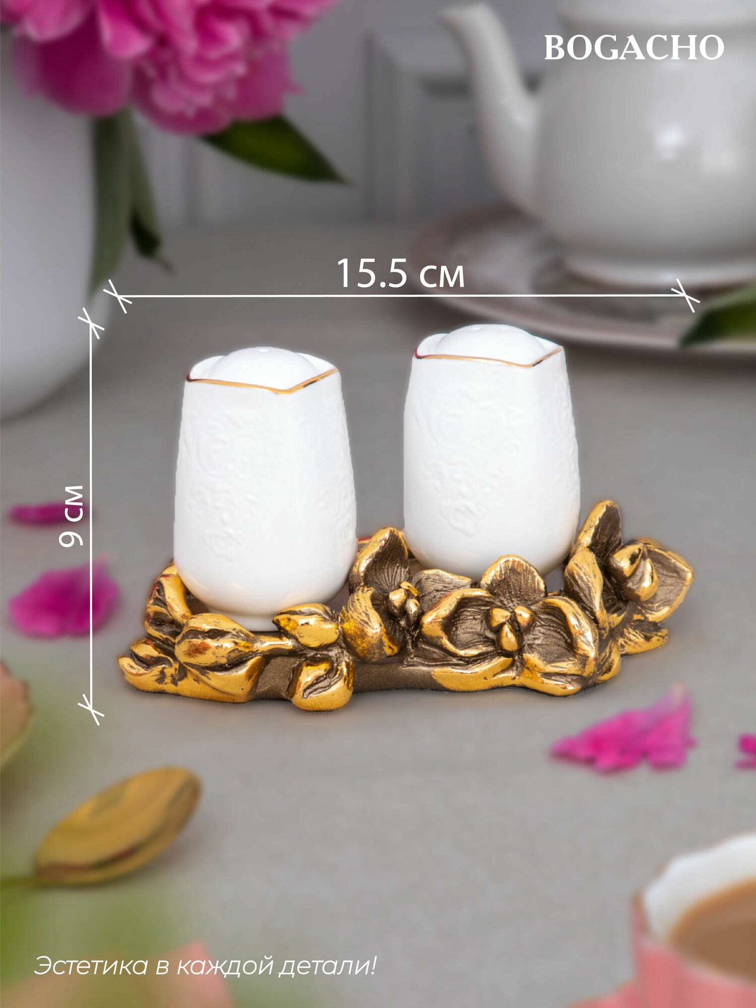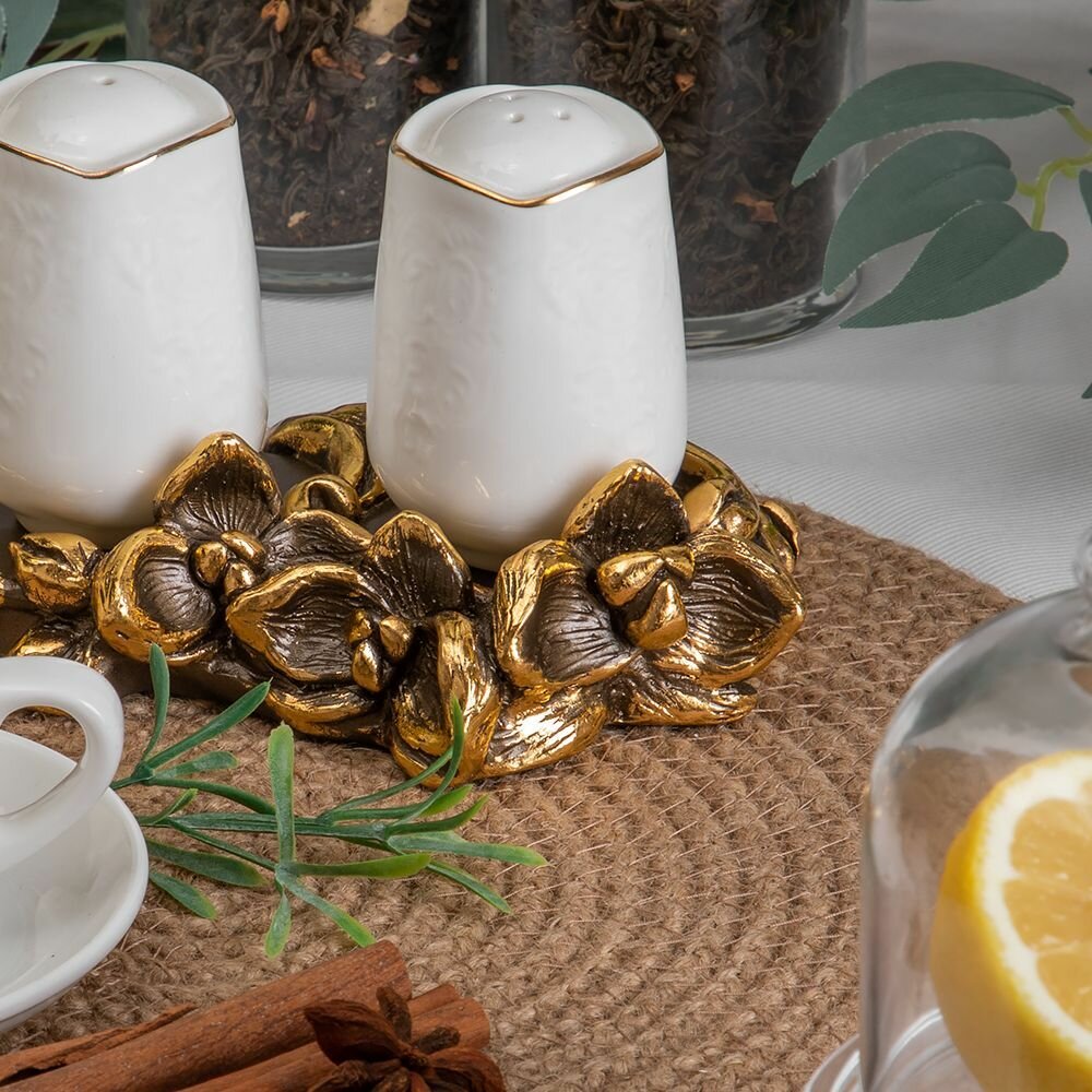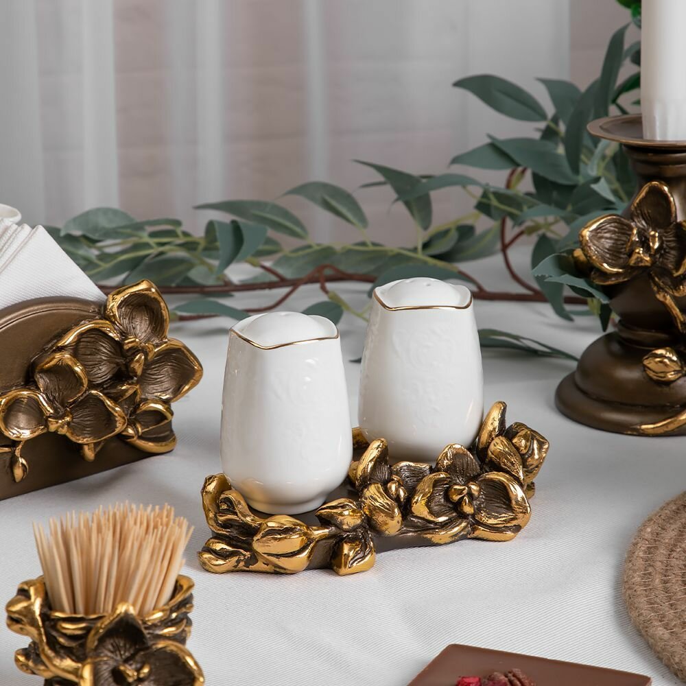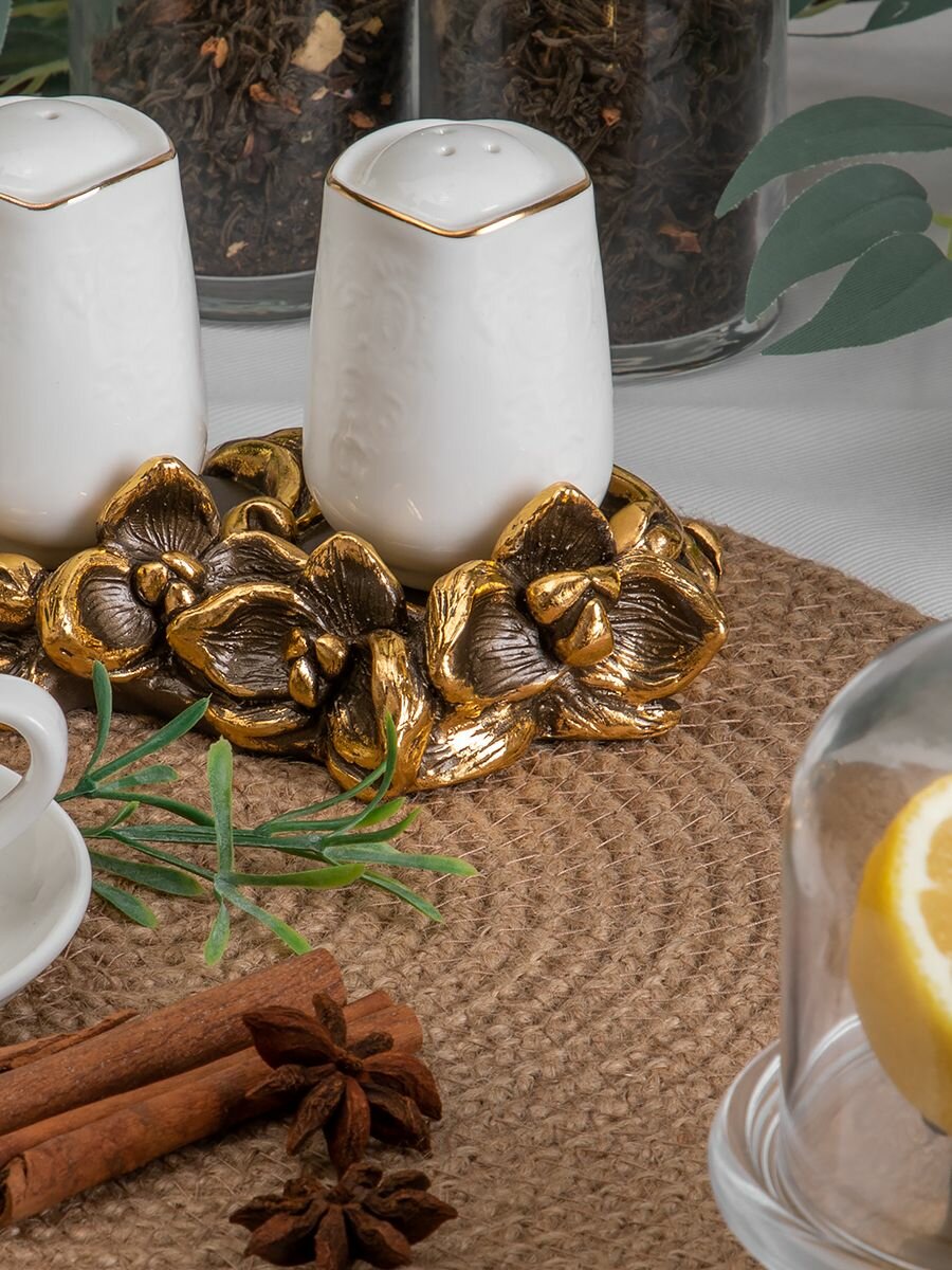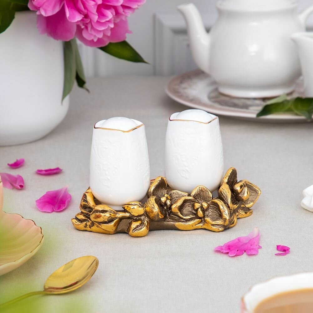 Купить Набор солонка и перечница Bogacho Орхидея Беаллара на декоративной подставке с цветами для кухонного обеденного стола