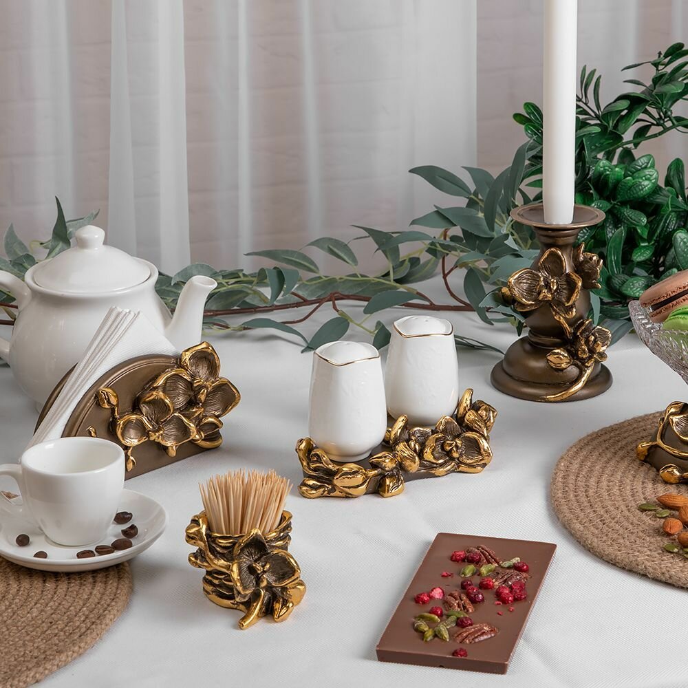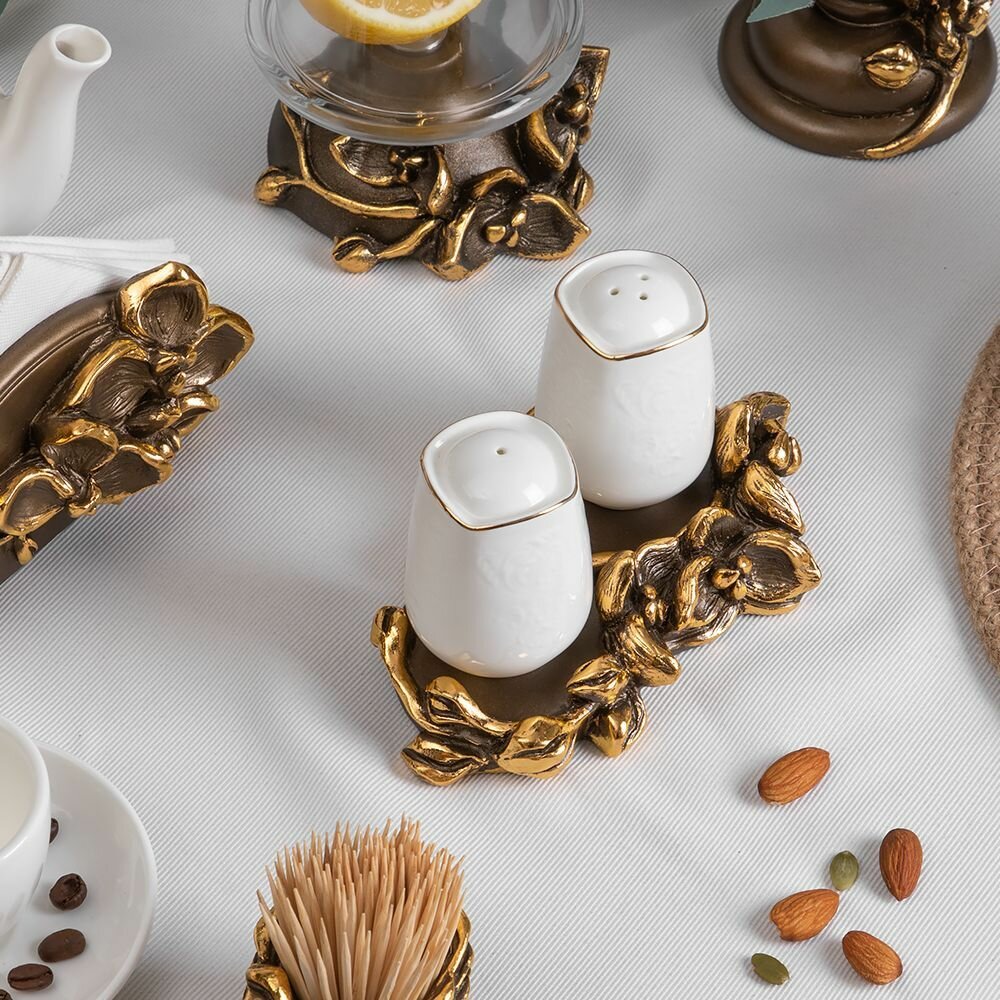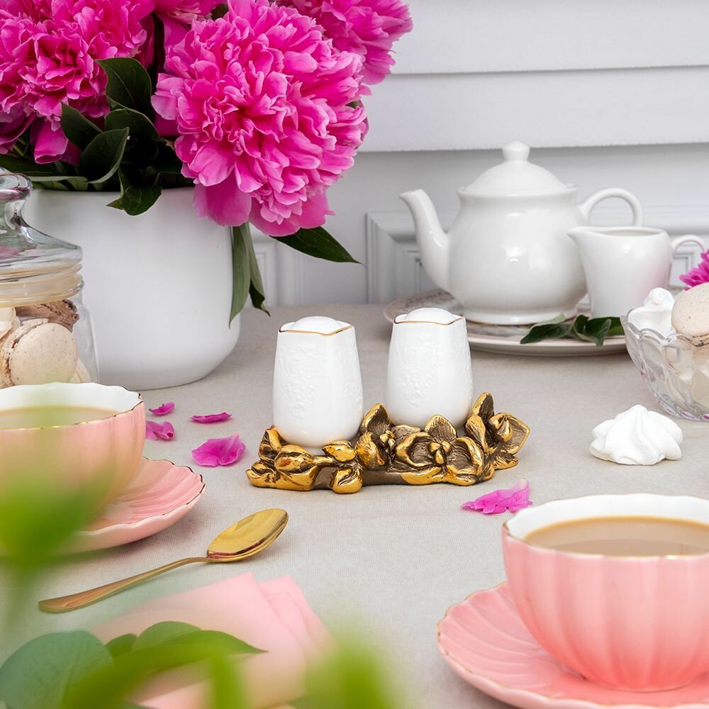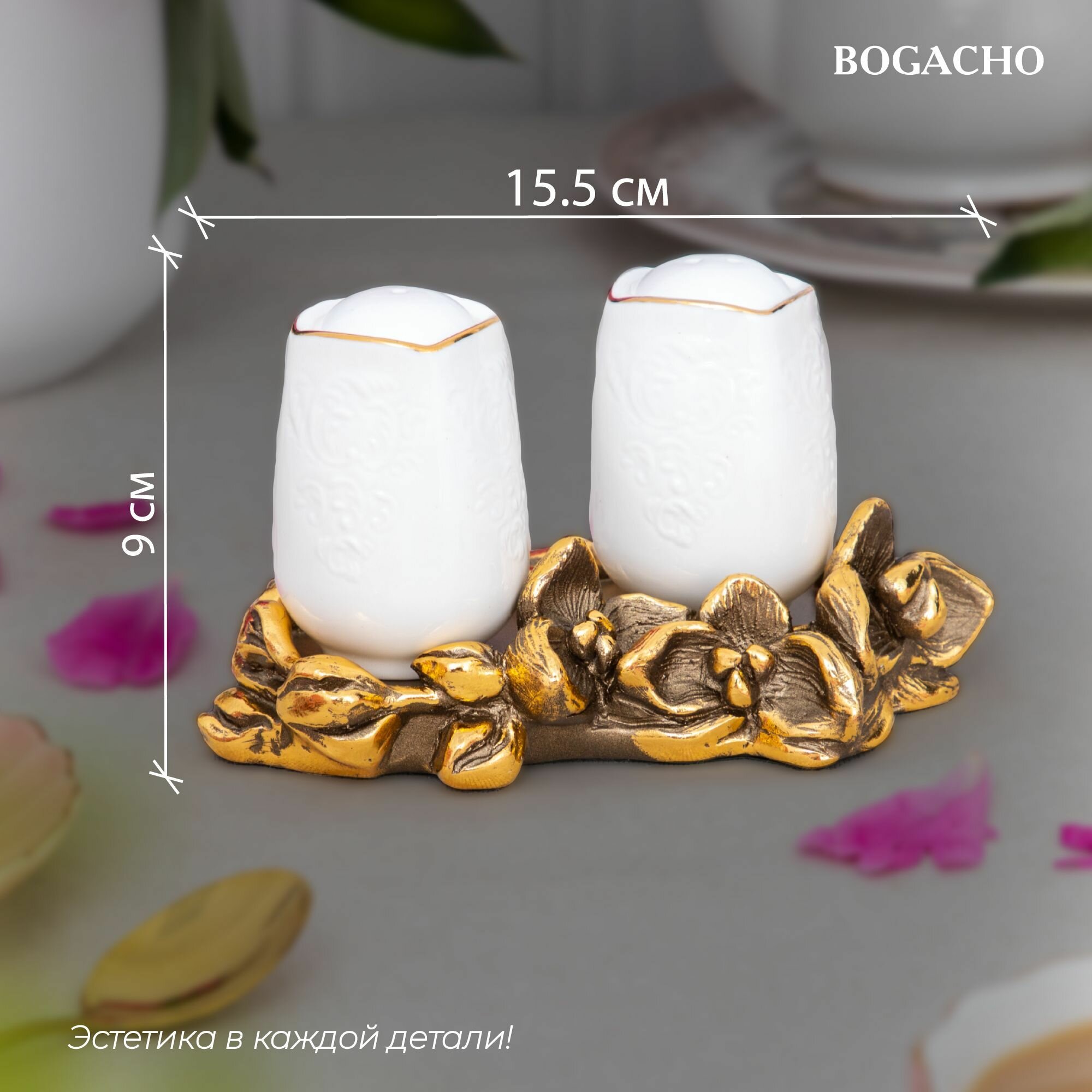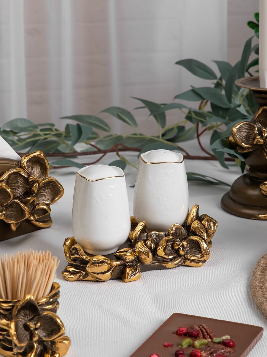 Купить Набор солонка и перечница Bogacho Орхидея Беаллара на декоративной подставке с цветами для кухонного обеденного стола