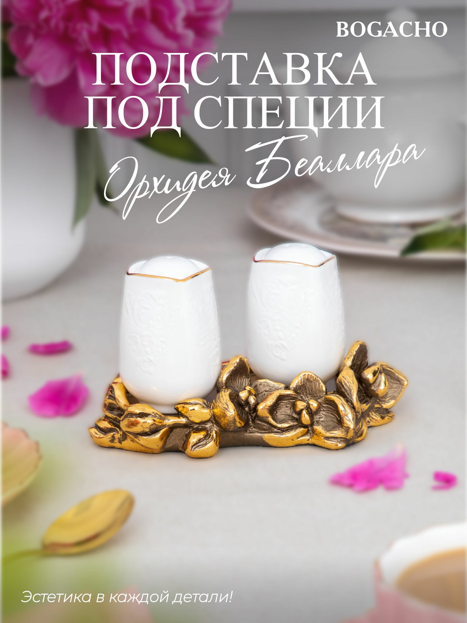Набор солонка и перечница Bogacho Орхидея Беаллара на декоративной подставке с цветами для кухонного обеденного стола интересное: