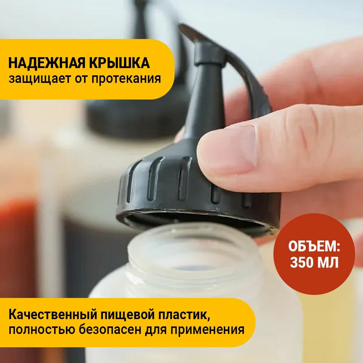 Емкость для соуса, соусник пластиковый Vevoxo, 350 мл, с черной крышкой, набор 3 шт. интересное: