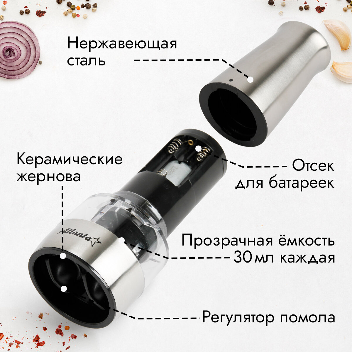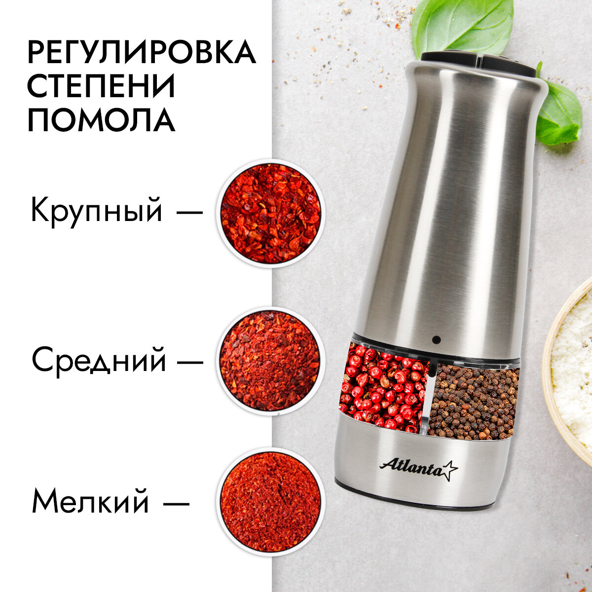 Мельница электрическая Atlanta ATH-4627 для специй, двойная, 30мл интересное: