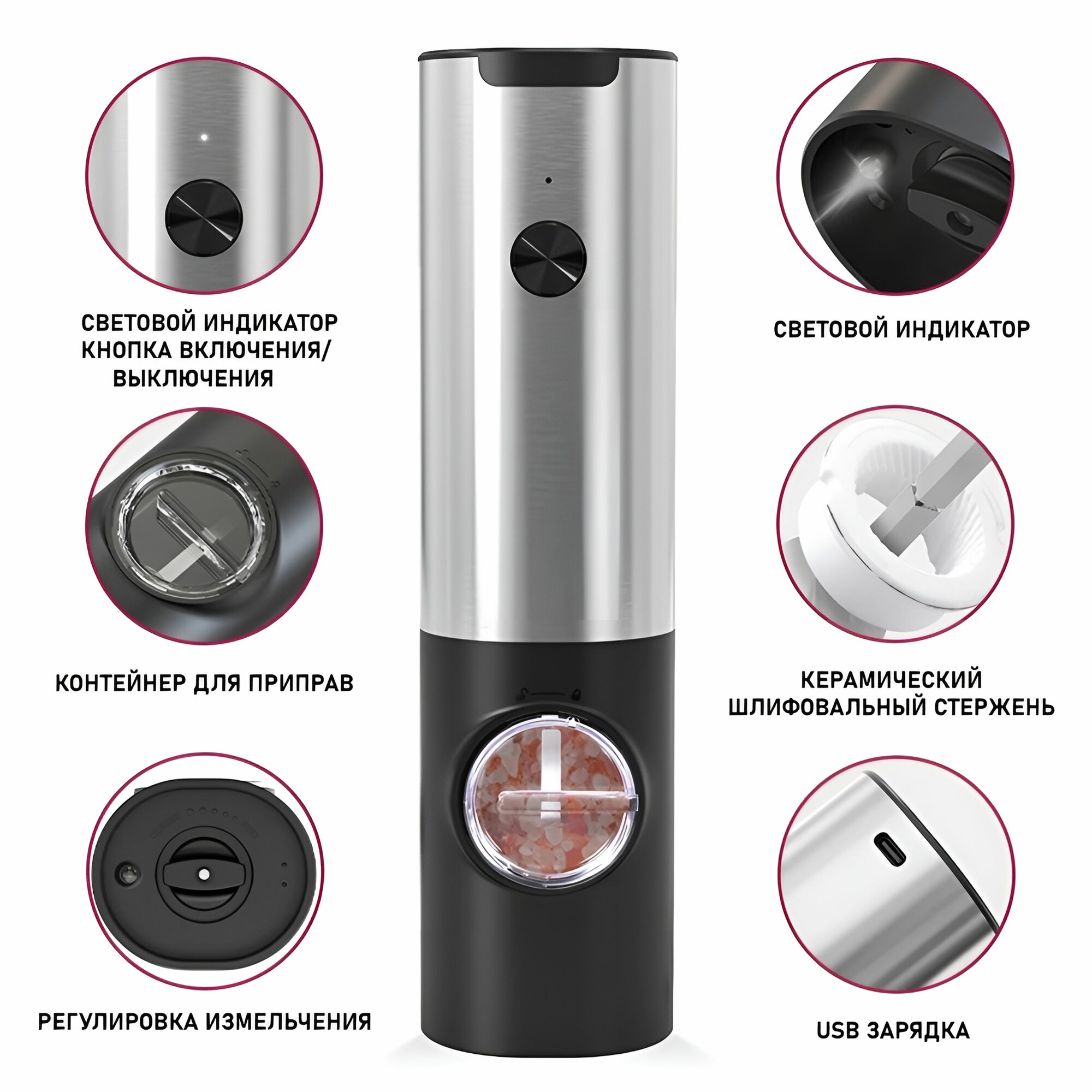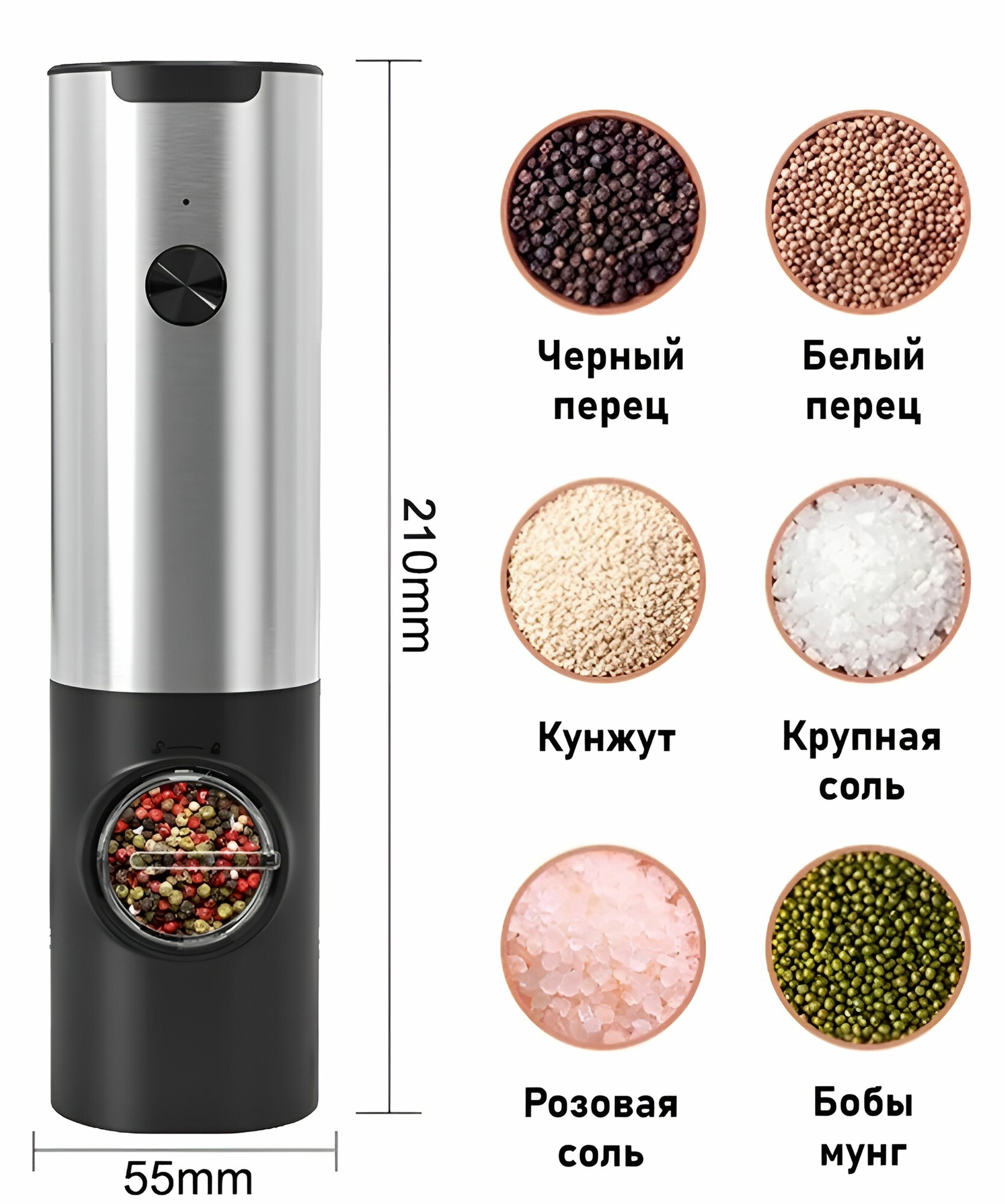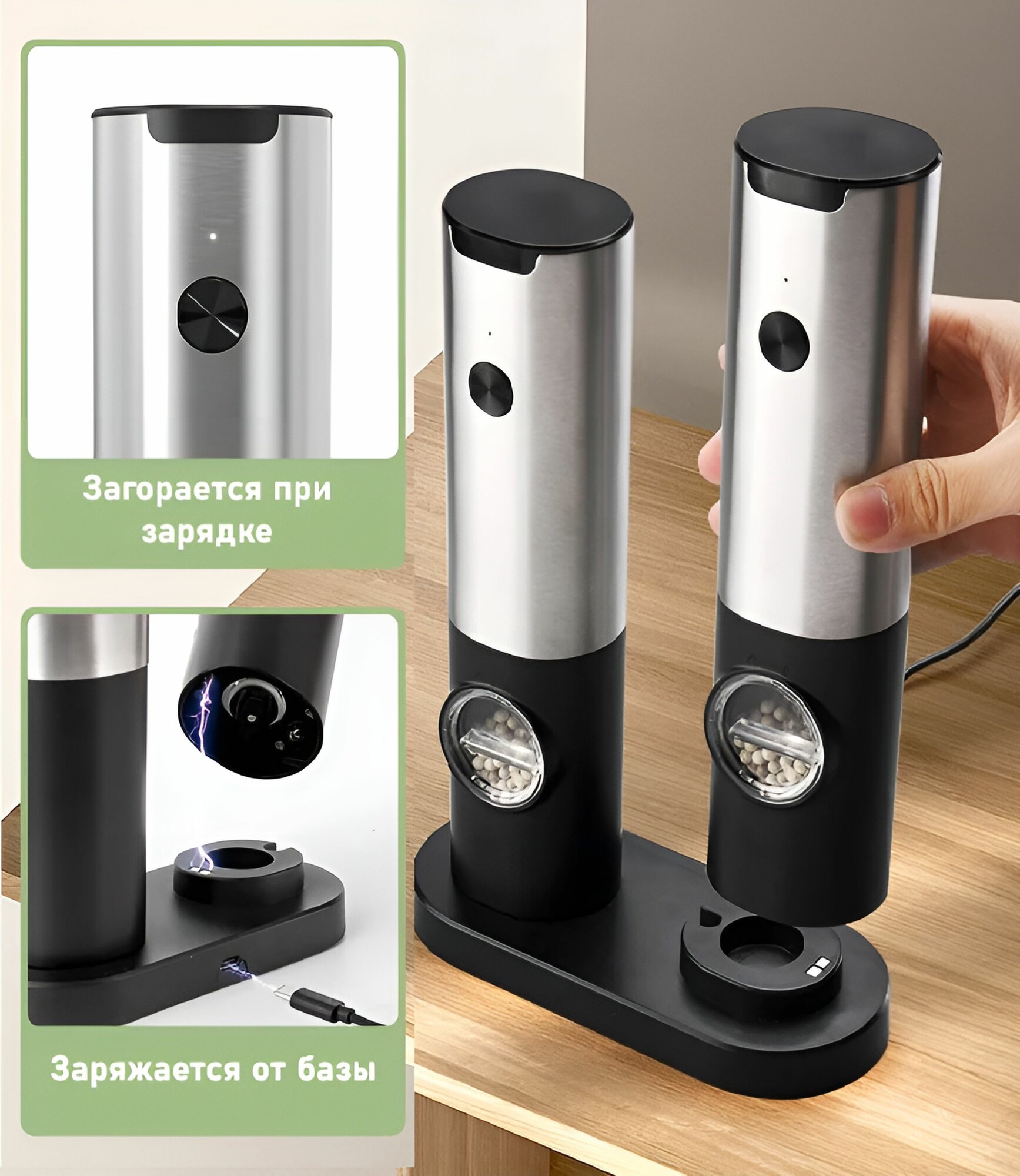 Электрическая мельница для специй, для соли, для перца, для приправ, перечница и солонка, 2 шт, черный интересное: