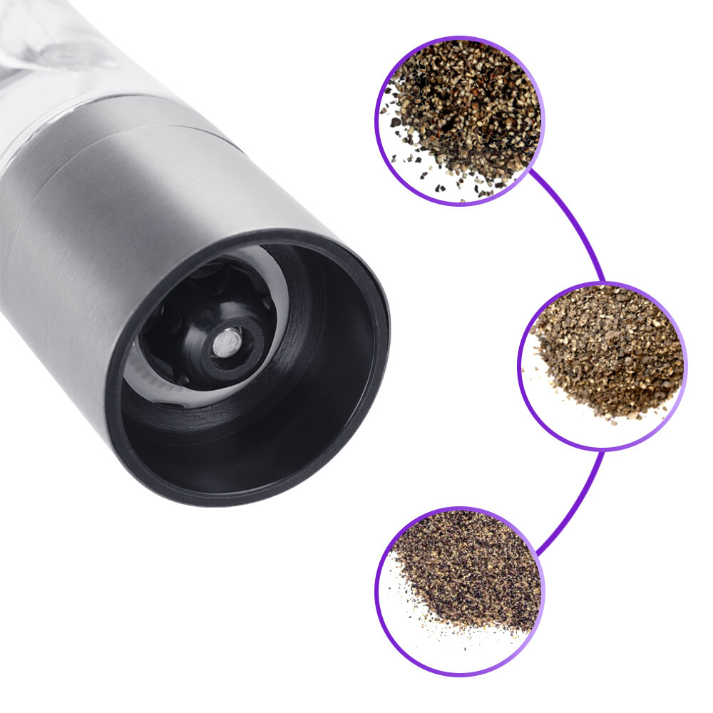 Набор автоматических мельниц для соли и перца Kitfort KT-2028, регулировка степени помола, в комплекте 2 мельницы, цвет серебристый