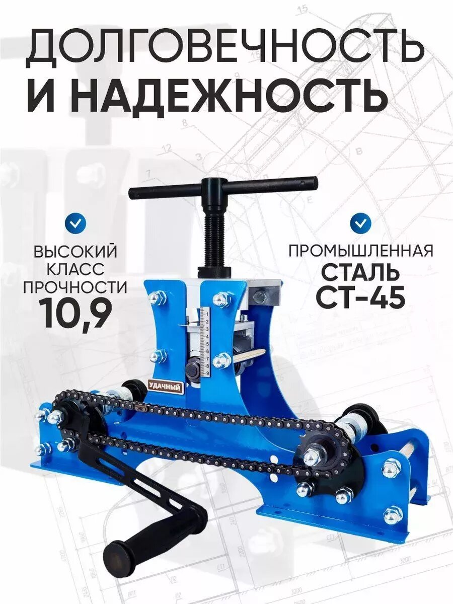 Трубогиб Удачный Премиум NEW с натяжителем цепи, ручной, для профиля, роликовый интересное: