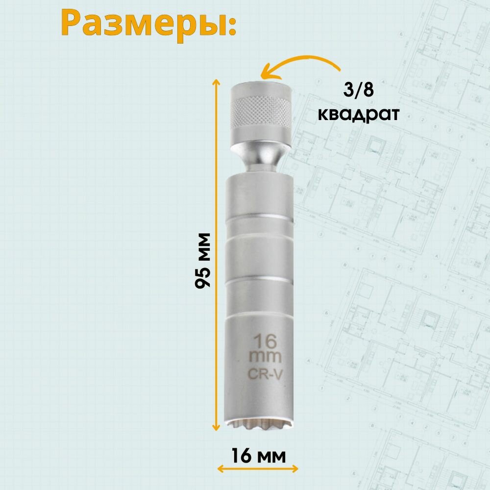 Головка торцевая для свечи зажигания с магнитом, под квадрат 3/8, диаметром 16мм интересное: