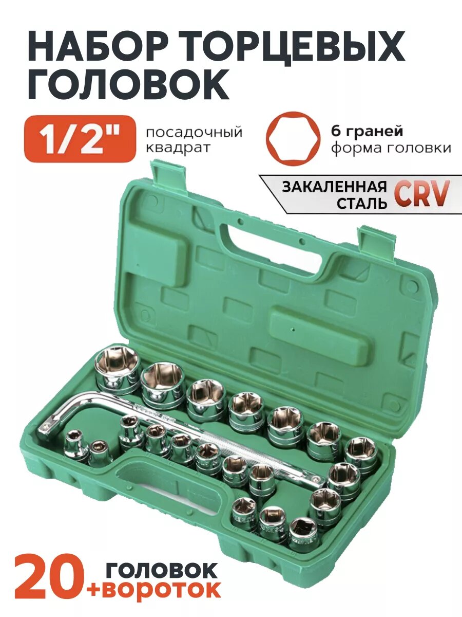 Набор торцевых головок 20 шт. , посадочный квадрат 1/2", 6-гранная головка в кейсе интересное: