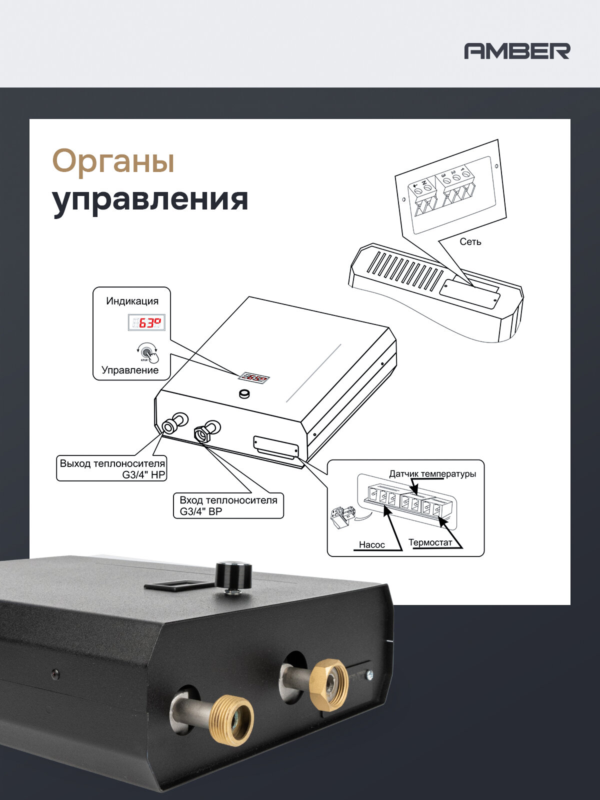 Электрокотел для отопления Amber DHEL 412 черный одноконтурный котел электрический 4, 8, 12 кВт с сухим ТЭНом