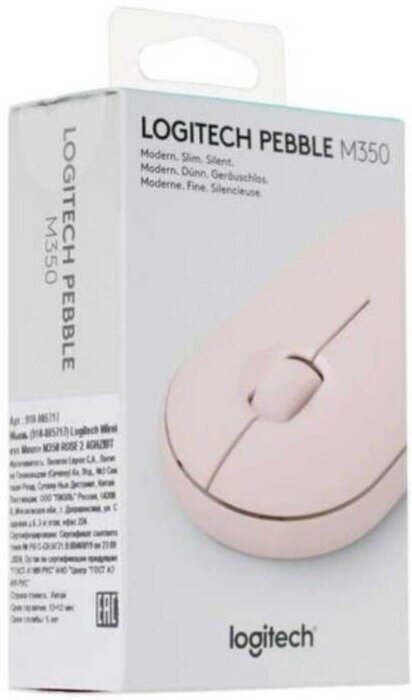Мышь Logitech Pebble M350, беспроводная, оптическая, 1000 dpi, розовая 10423164 .