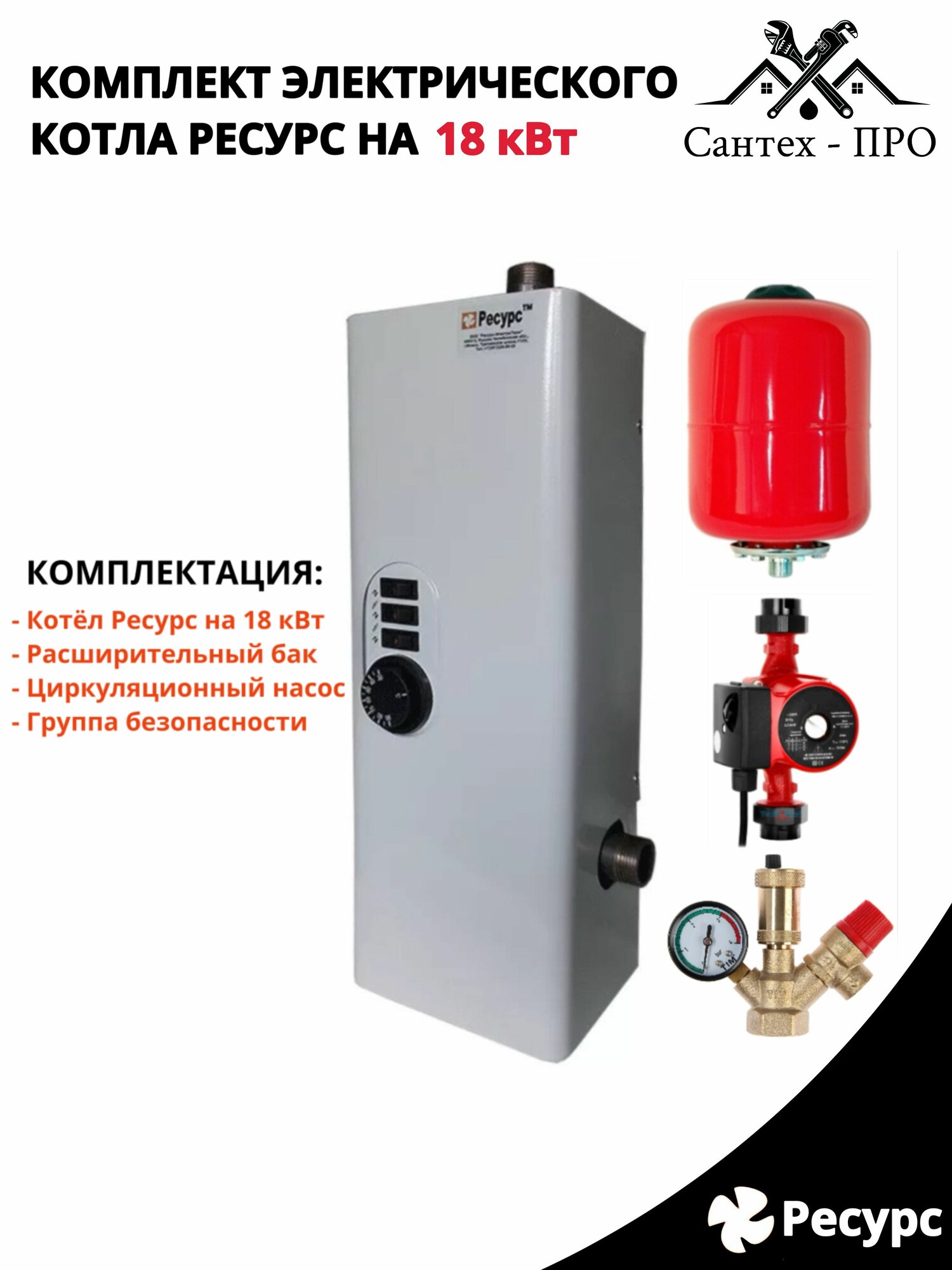 Купить Электрический котел Ресурс комплект на 18 кВт, рассчитанный на 180 квадратных метров