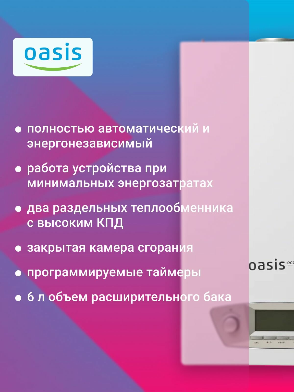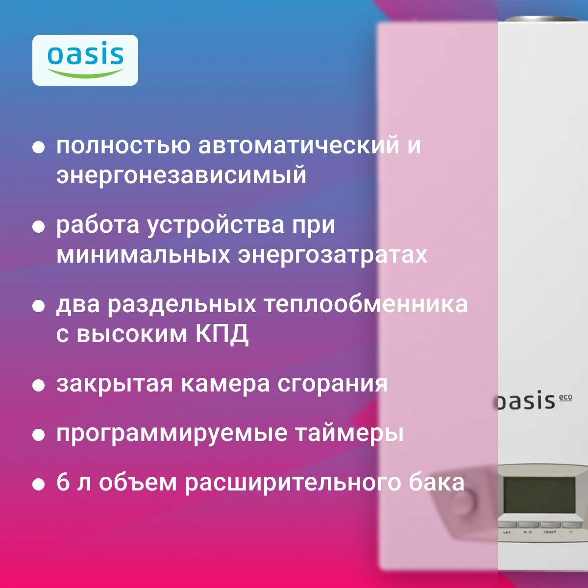 Котёл газовый Oasis Eco RE-20, настенный, двухконтурный, 20кВт, белый интересное: