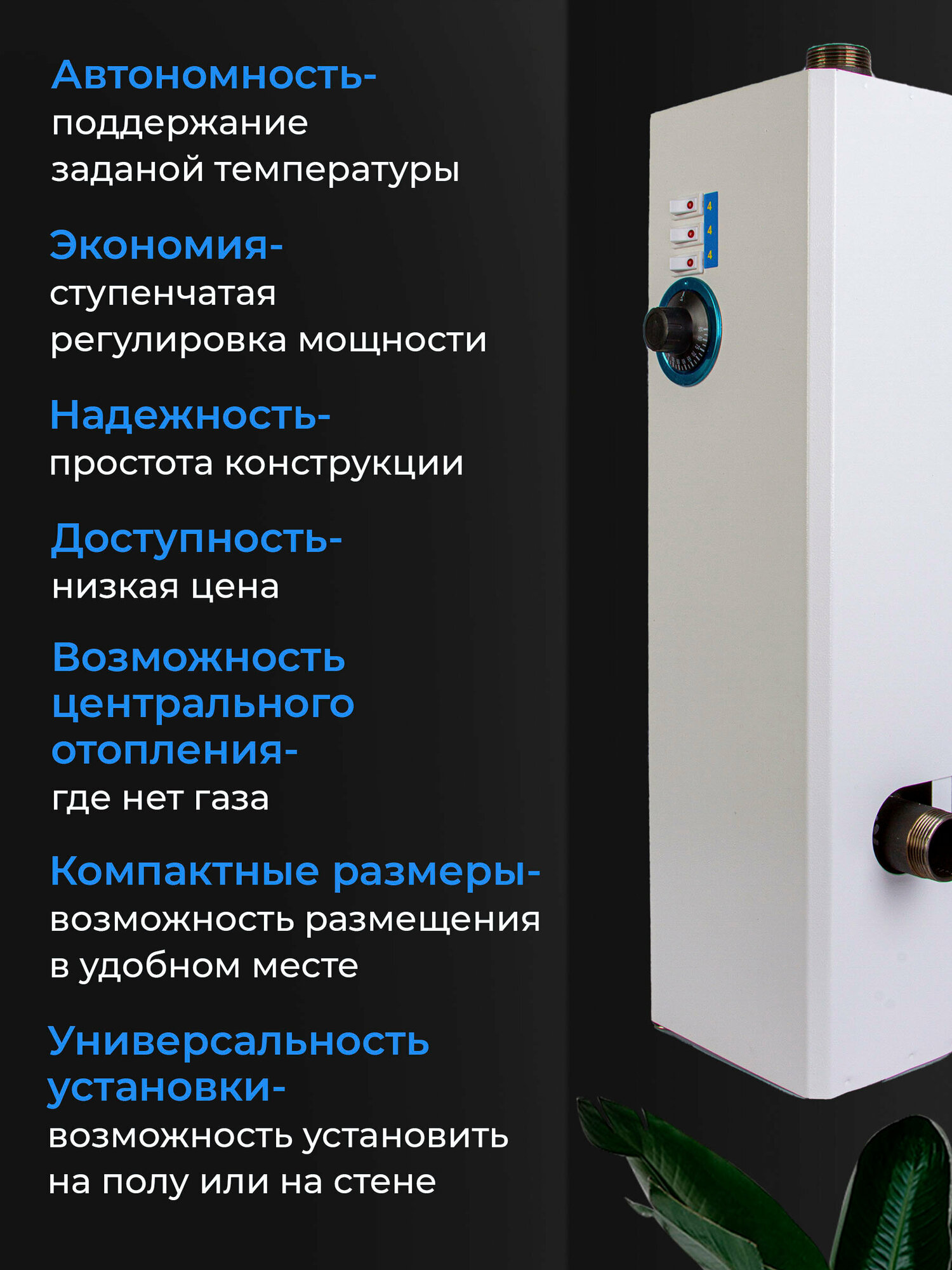Электрический котел ЭВПМ (ЭВП) 6 кВт, 220В, на площадь 65 кв. метров. напольный/настенный