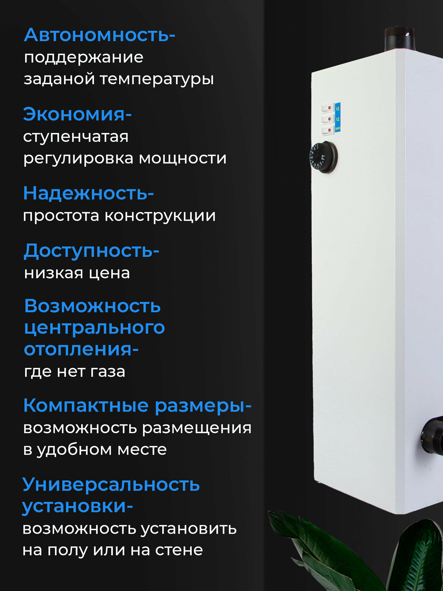 Электрический котел ЭВПМ (ЭВП) 6 кВт, 220В, на площадь 65 кв. метров. напольный/настенный