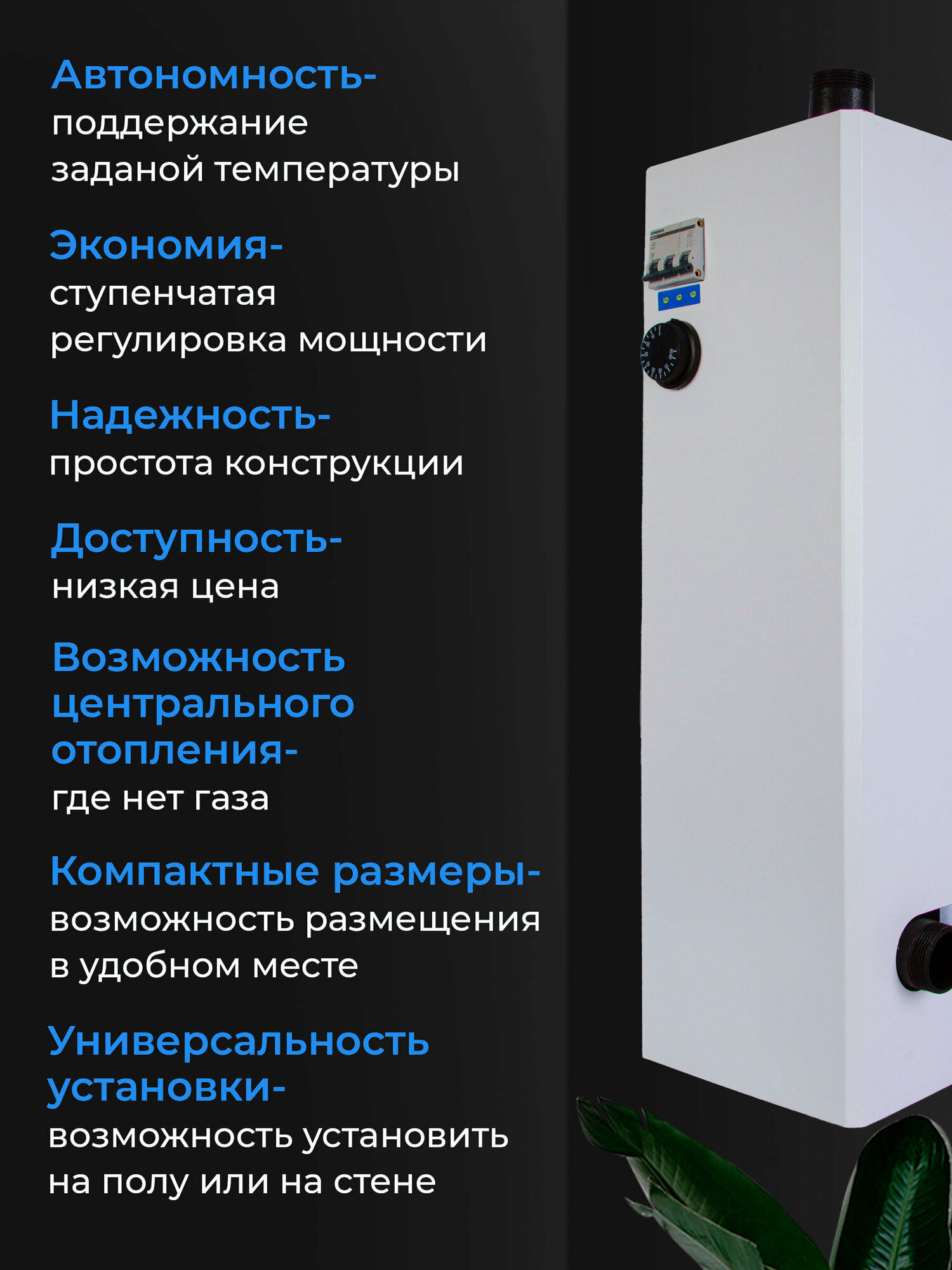 Электрический котел ЭВПМ (ЭВП) 6 кВт, 220В, на площадь 65 кв. метров. напольный/настенный
