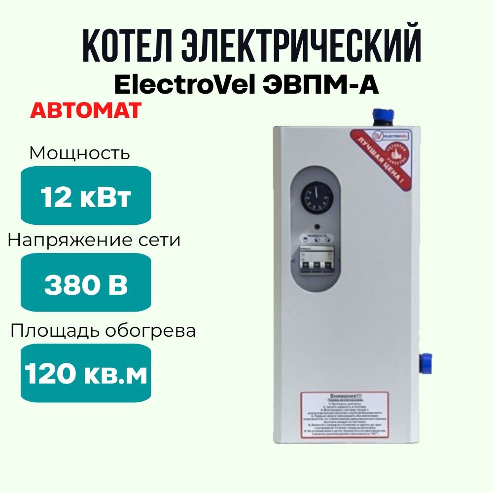 Электрокотел отопительный ElectroVel ЭВПМ-а, мощность 12 кВт, площадь обогрева 120 кв2, настенный, котел электрический автомат интересное: