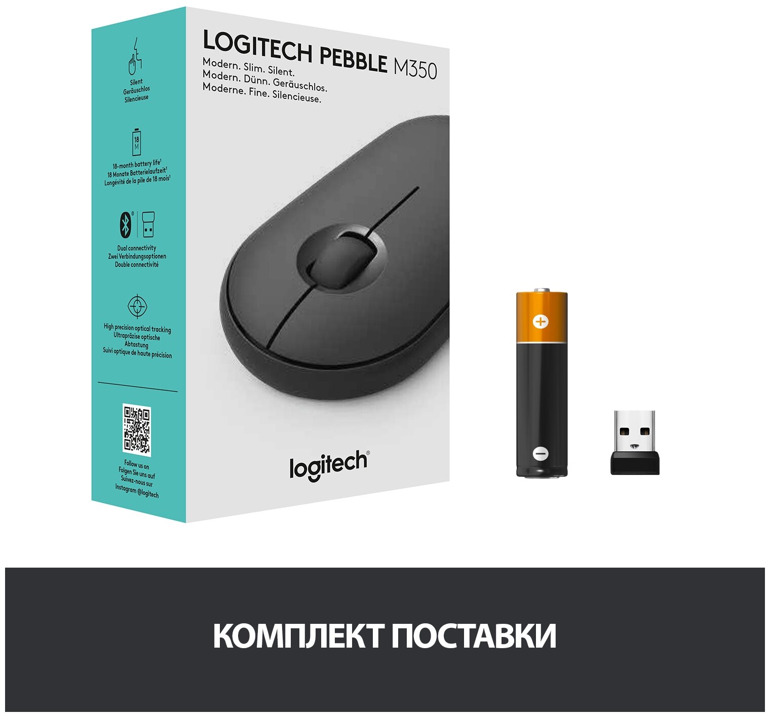 Беспроводная мышь Logitech Pebble M350, графитовый (graphite)
