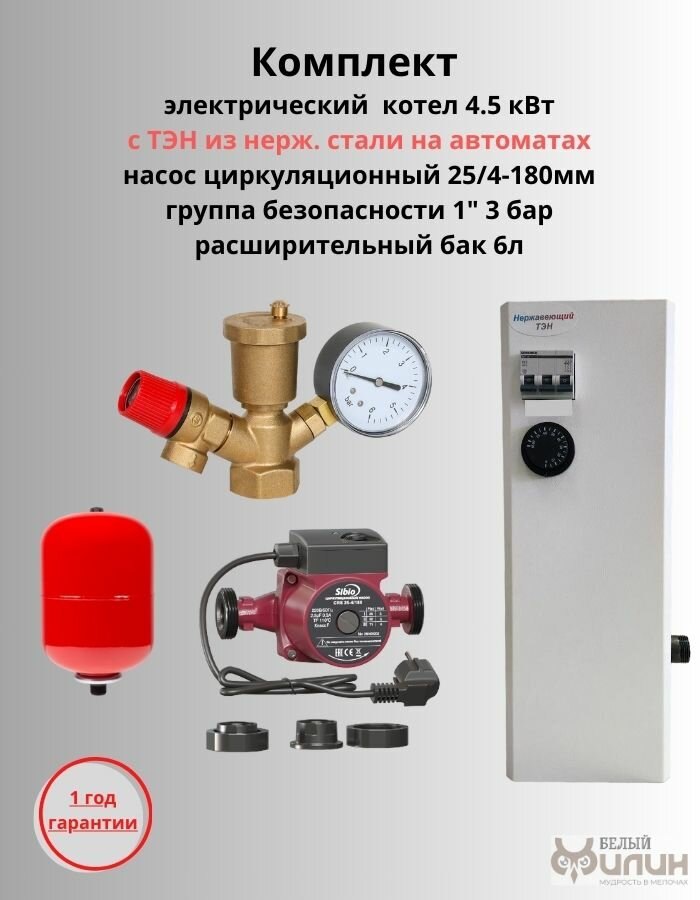 Ниже Вы можете прочитать отзывы на Электрокотел 4.5 кВт, + комплект(бак, насос, группа безопасности), ознакомится с подробными характеристиками, посмотреть интересные обзоры и фотографии на Электрокотел 4.5 кВт, + комплект(бак, насос, группа безопасности).