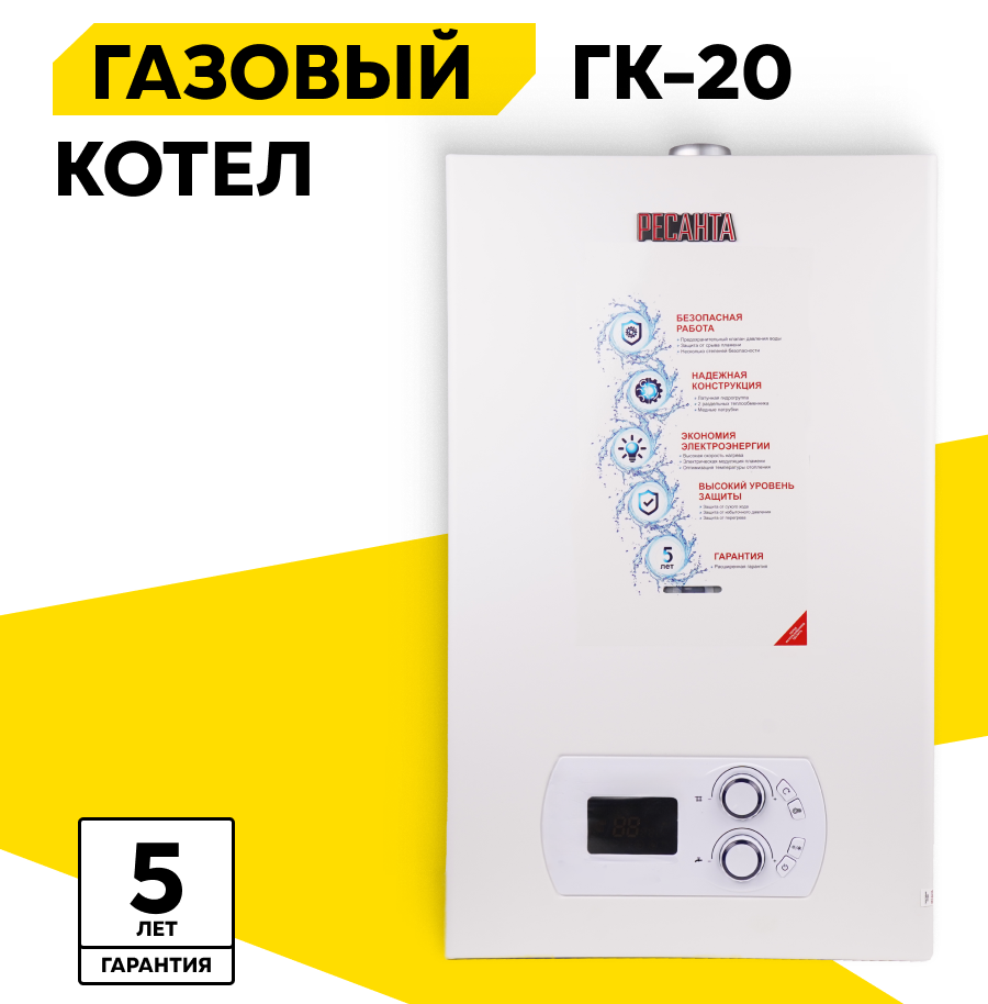Газовый настенный двухконтурный котел ГК-20 Ресанта. Максимальная мощность 20 кВт интересное: