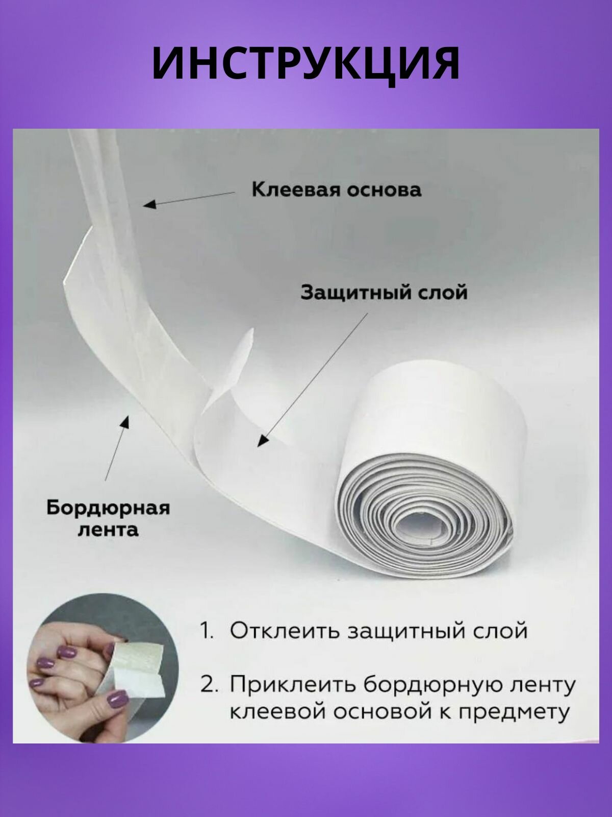 Бордюрная лента для ванны и кухни, самоклеющаяся, 320х3.5см, белая матовая, каучук