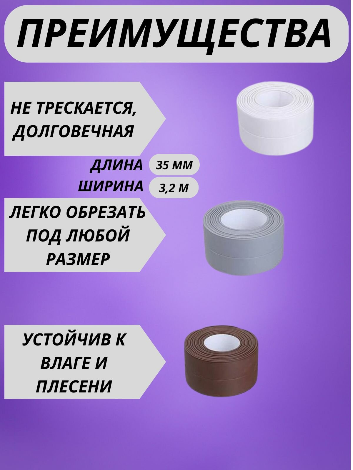 Бордюрная лента для ванны и кухни, самоклеющаяся, 320х3.5см, белая матовая, каучук