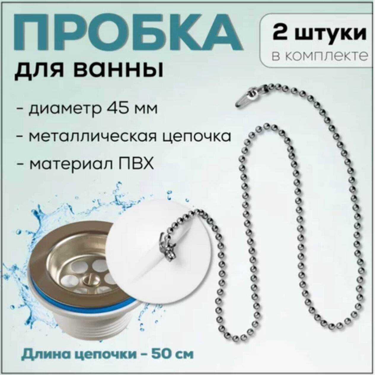 Набор пробок для ванны с цепочкой – 2 шт, резина, универсальный размер интересное:
