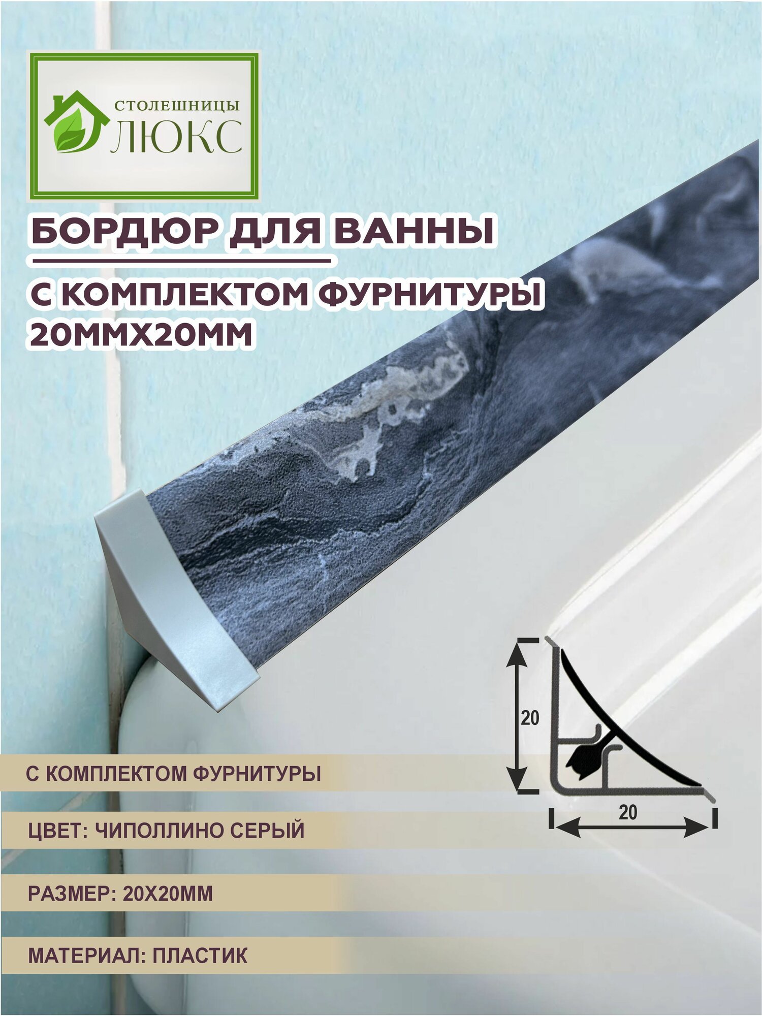 Бордюр для ванны, ПВХ, с комплектом фурнитуры, 20 мм*20 мм, Чиполлино Серый, 100 см интересное: