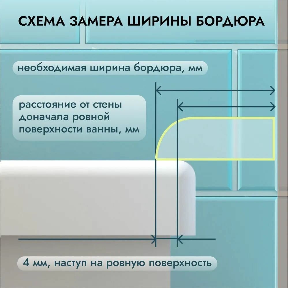 Акриловый бордюр для ванной Г24 длина 900 мм, ширина 2.4 см плинтус для ванны интересное: