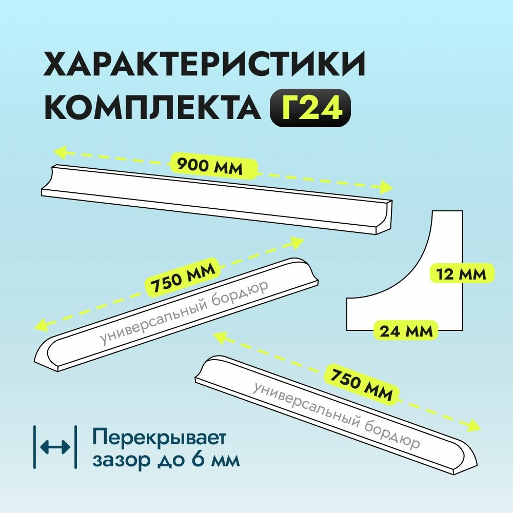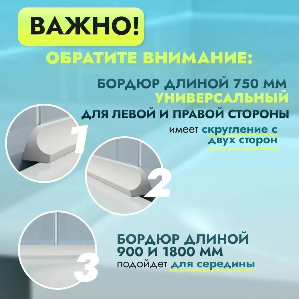 Комплект акриловых бордюров для ванной Г24 750 мм (2шт), 900 мм (2 шт), ширина 2.4 см плинтус для ванны интересное: