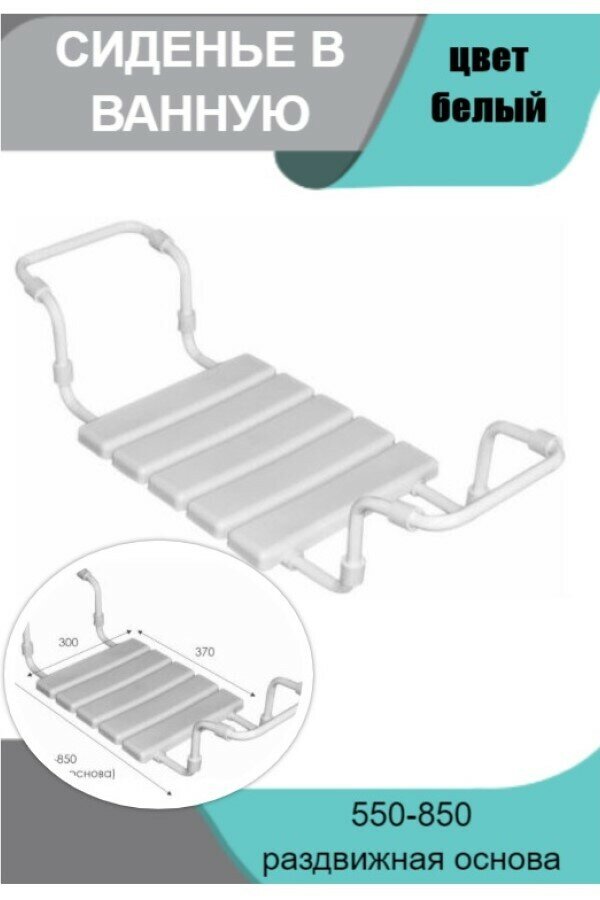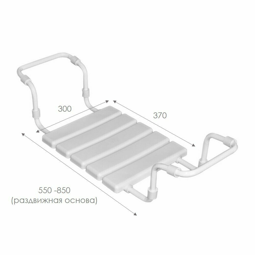 Сиденье в ванную / Сиденье в ванную на раздвижной металлической основе / Сиденье 37х30 см, цвет белый интересное: