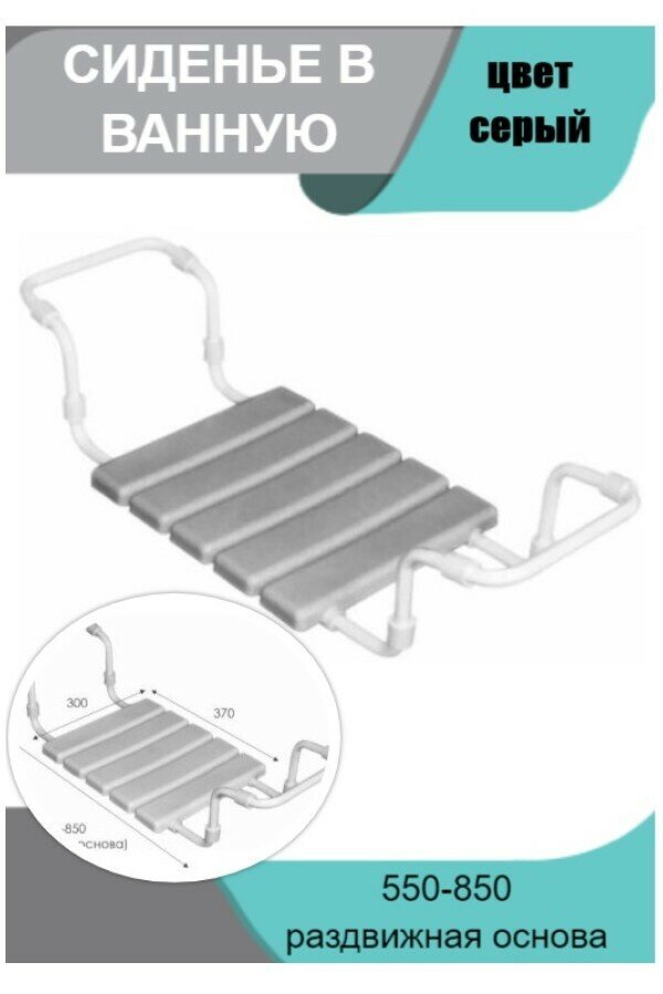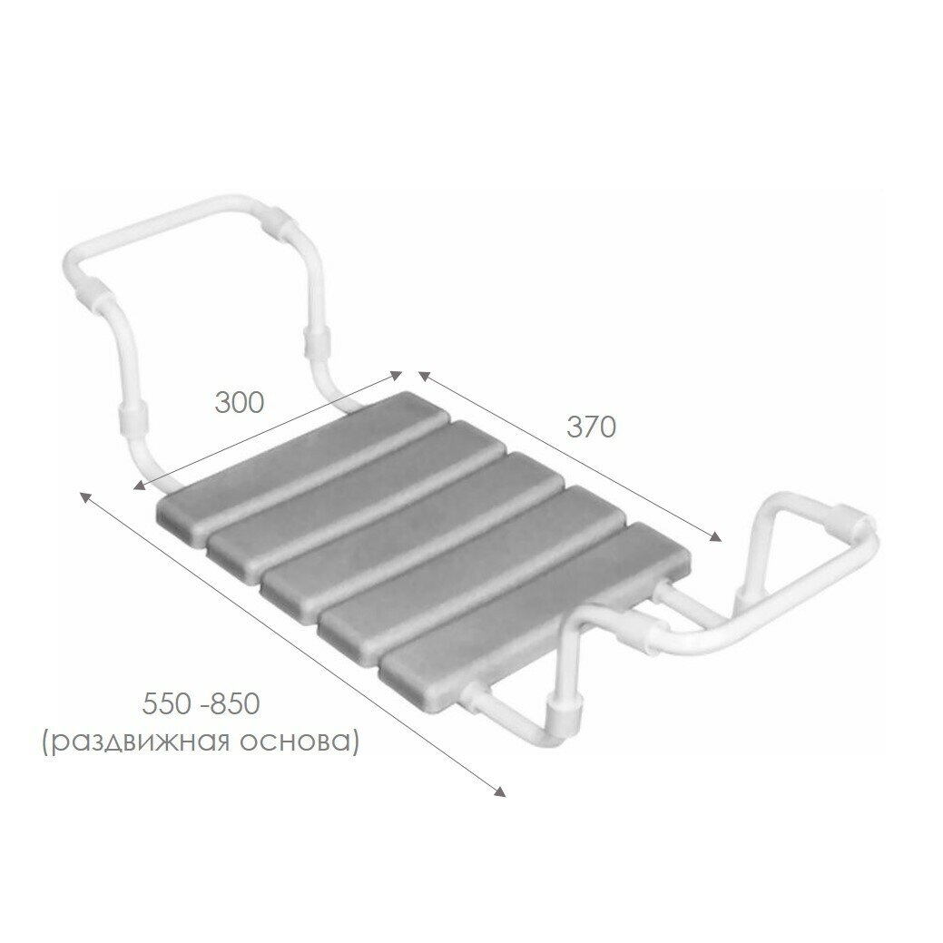 Сиденье в ванную / Сиденье в ванную на раздвижной металлической основе / Сиденье 37х30 см, цвет серый интересное: