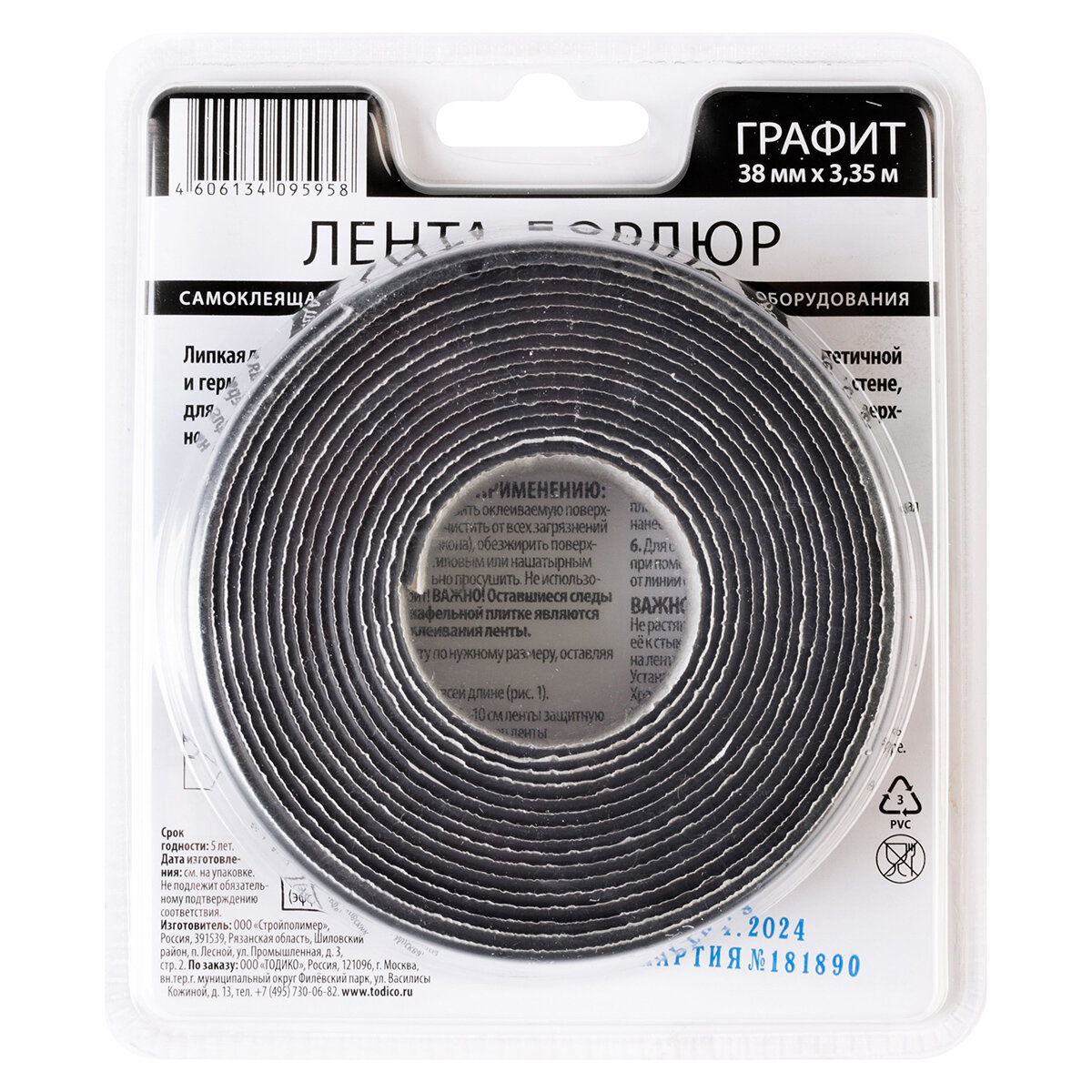 Бордюрная лента для ванны Аккурат 38 мм, графит, 3.35 м, водостойкая, герметичная, Россия интересное: