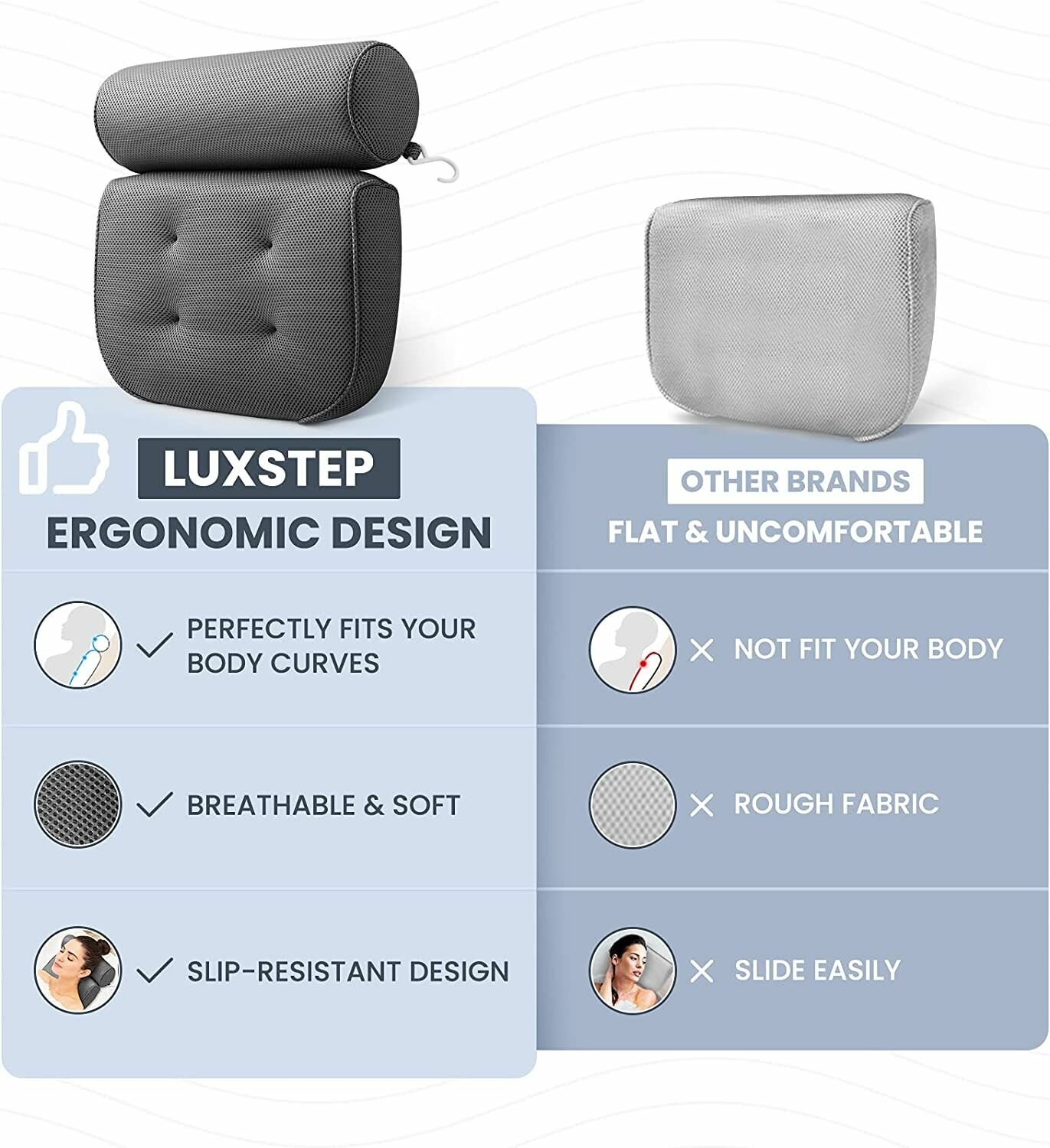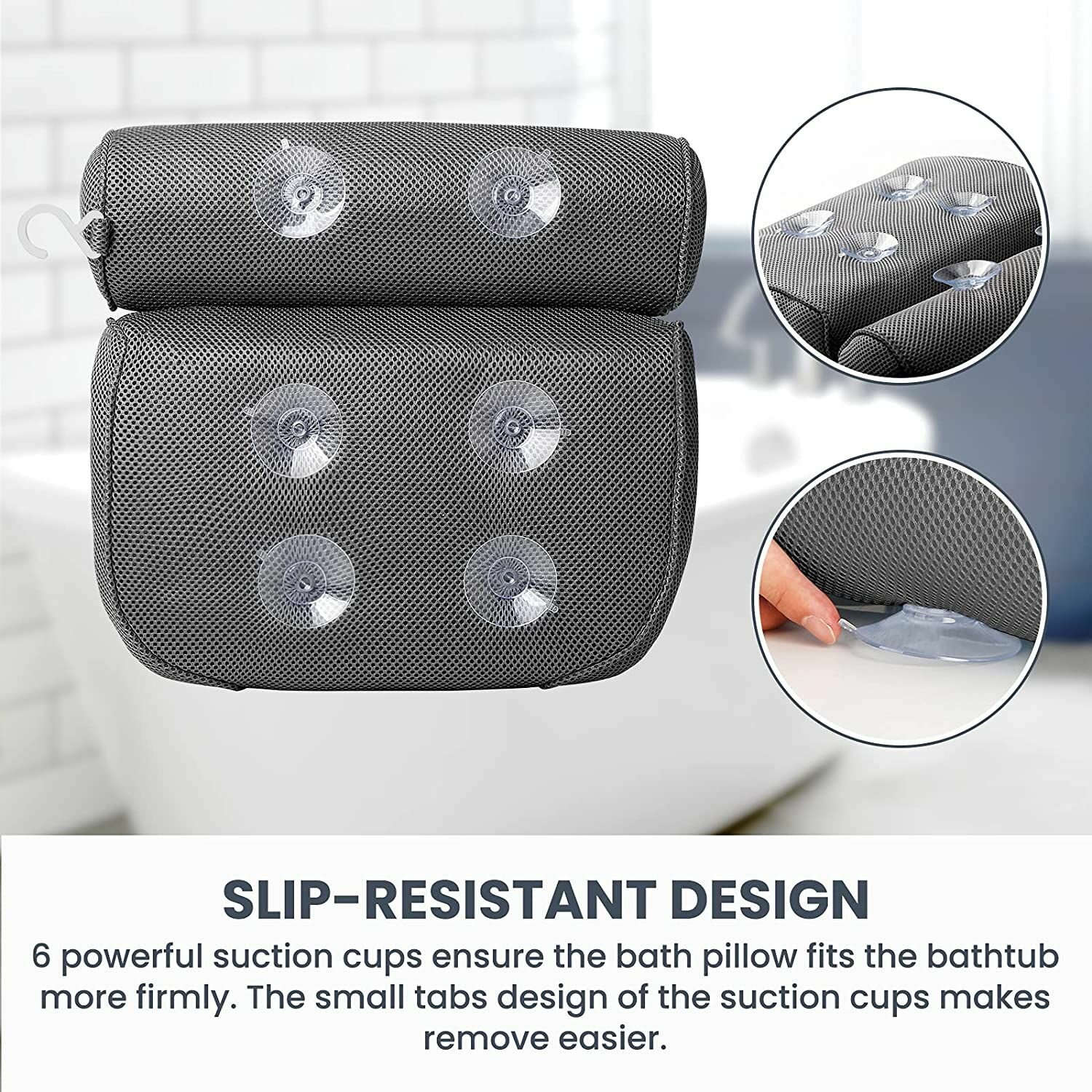 Купить Подушка для ванны / Подголовник для ванны на присосках с крючком - "Спа" серая, 35x33x10, инновационный материал 3D-AIR-Mesh
