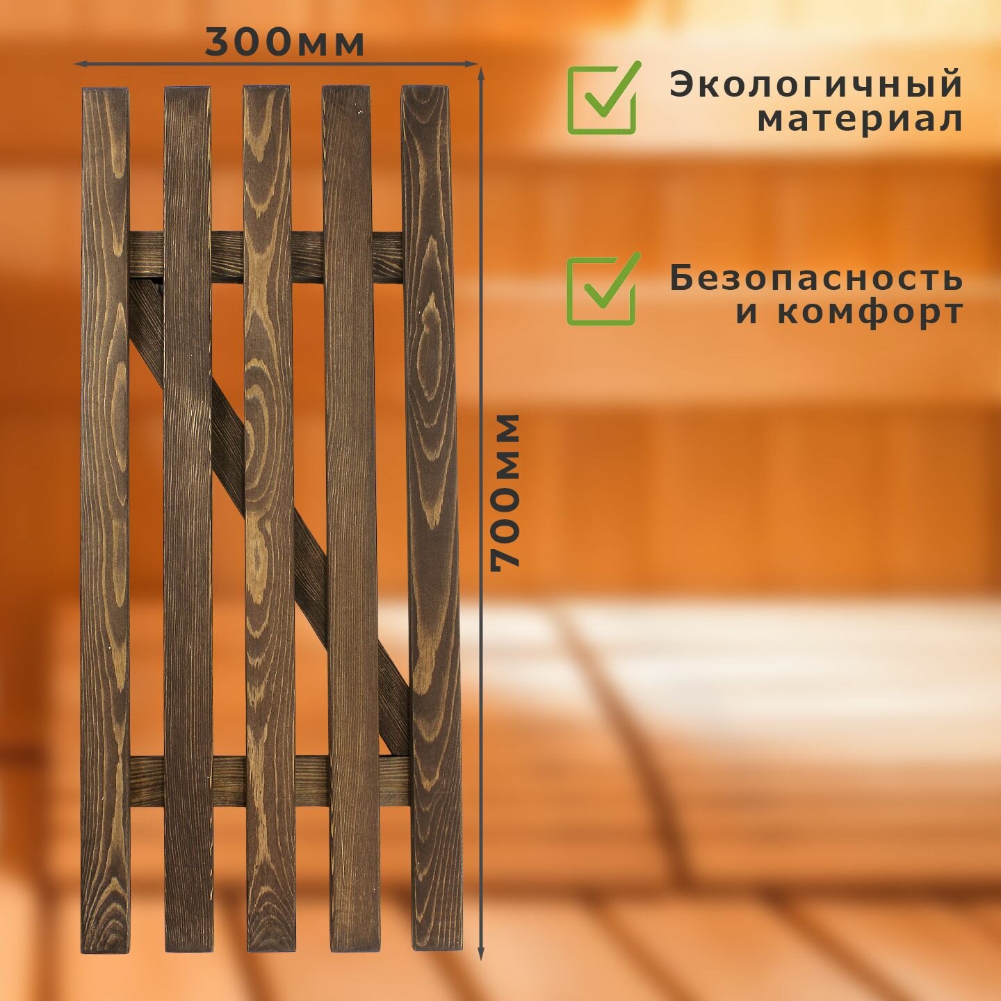 Решетка-полка деревянная в ванную комнату, баню, бассейн. цвет венге Размер 700*300*40 мм. интересное: