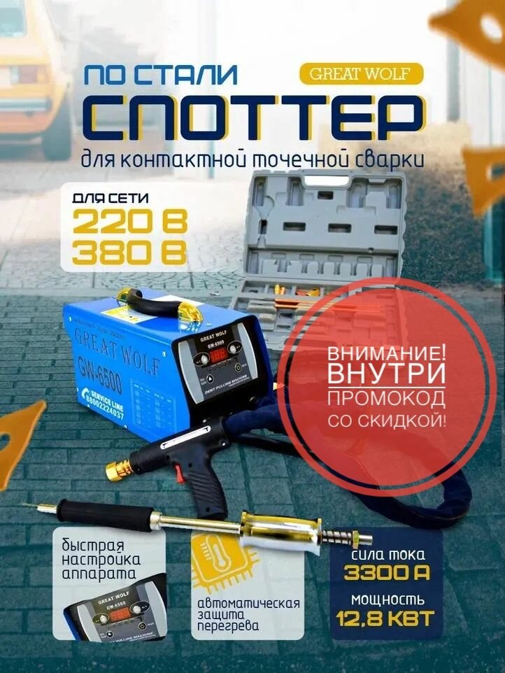 Споттер GW-6500 220 Great Wolf, 220В, max 3300А, 12.8кВт интересное:
