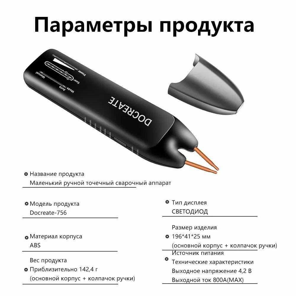 Docreate Портативный аппарат для точечной сварки, литиевой батареей 18650,11 уровней регулируемой мощности, никелевая полоска толщиной 0.1-0.2 мм интересное: