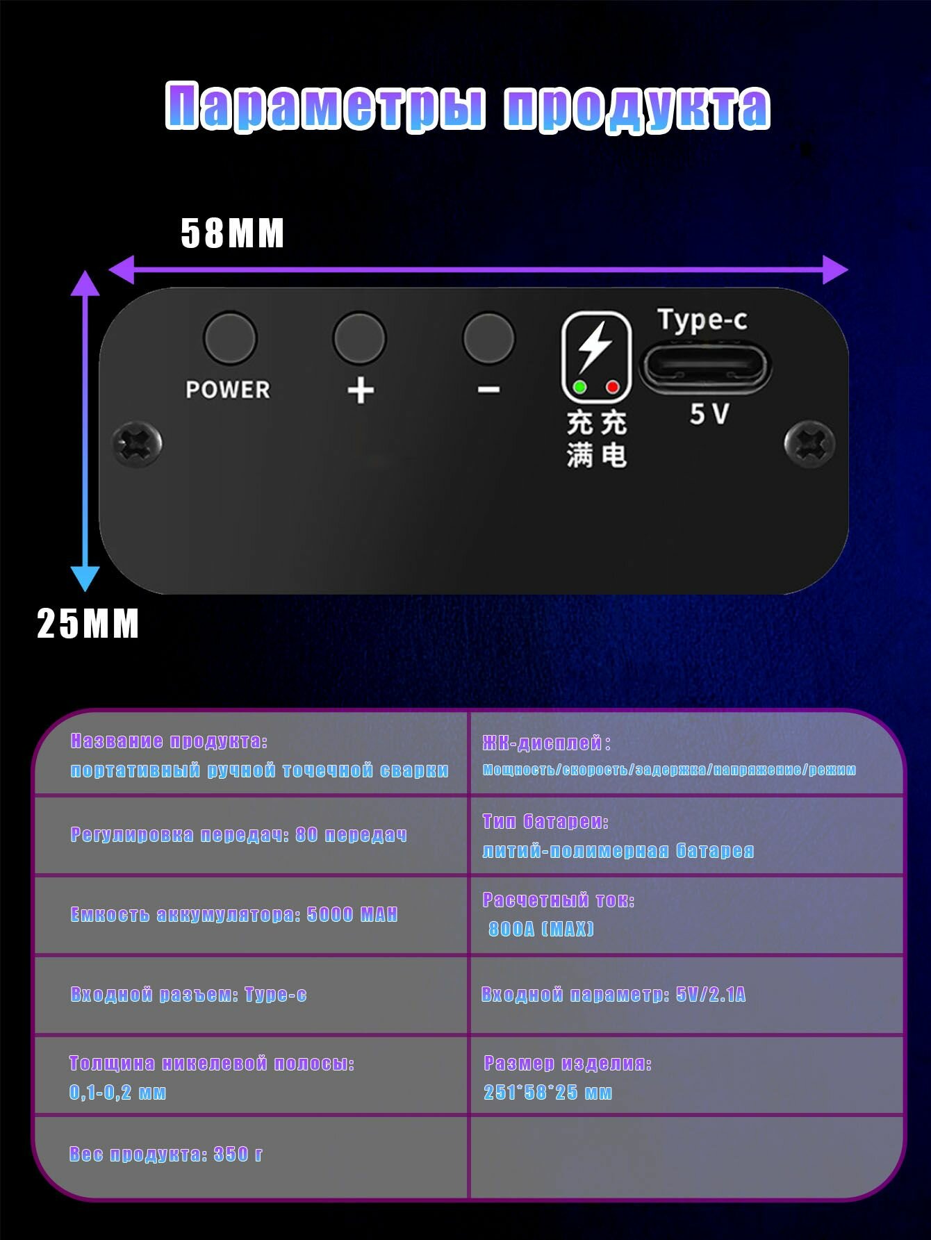 Портативный ручной аппарат для точечной сварки с цветным экраном и цифровым дисплеем 18650 Аппарат литиевой батареей интересное:
