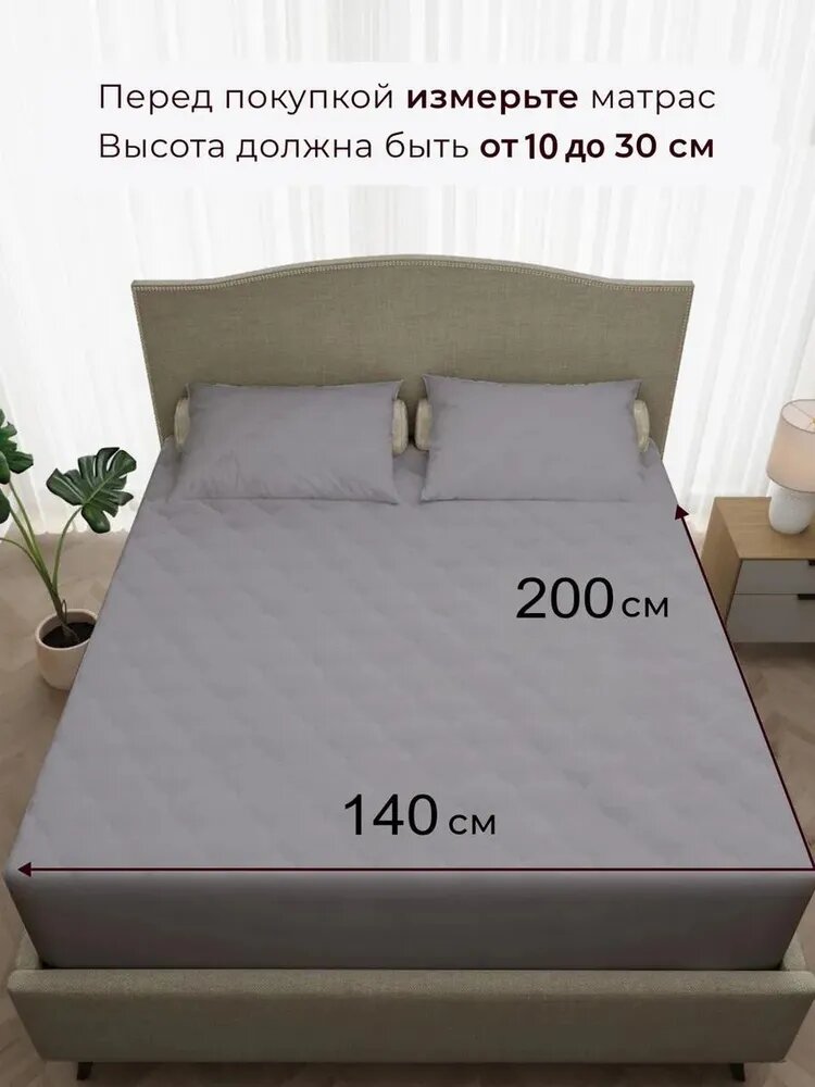 Экоториум Наматрасник 140х200 защитный, чехол на матрас стеганый на резинке с бортиками до 30 см, мягкий, Серый