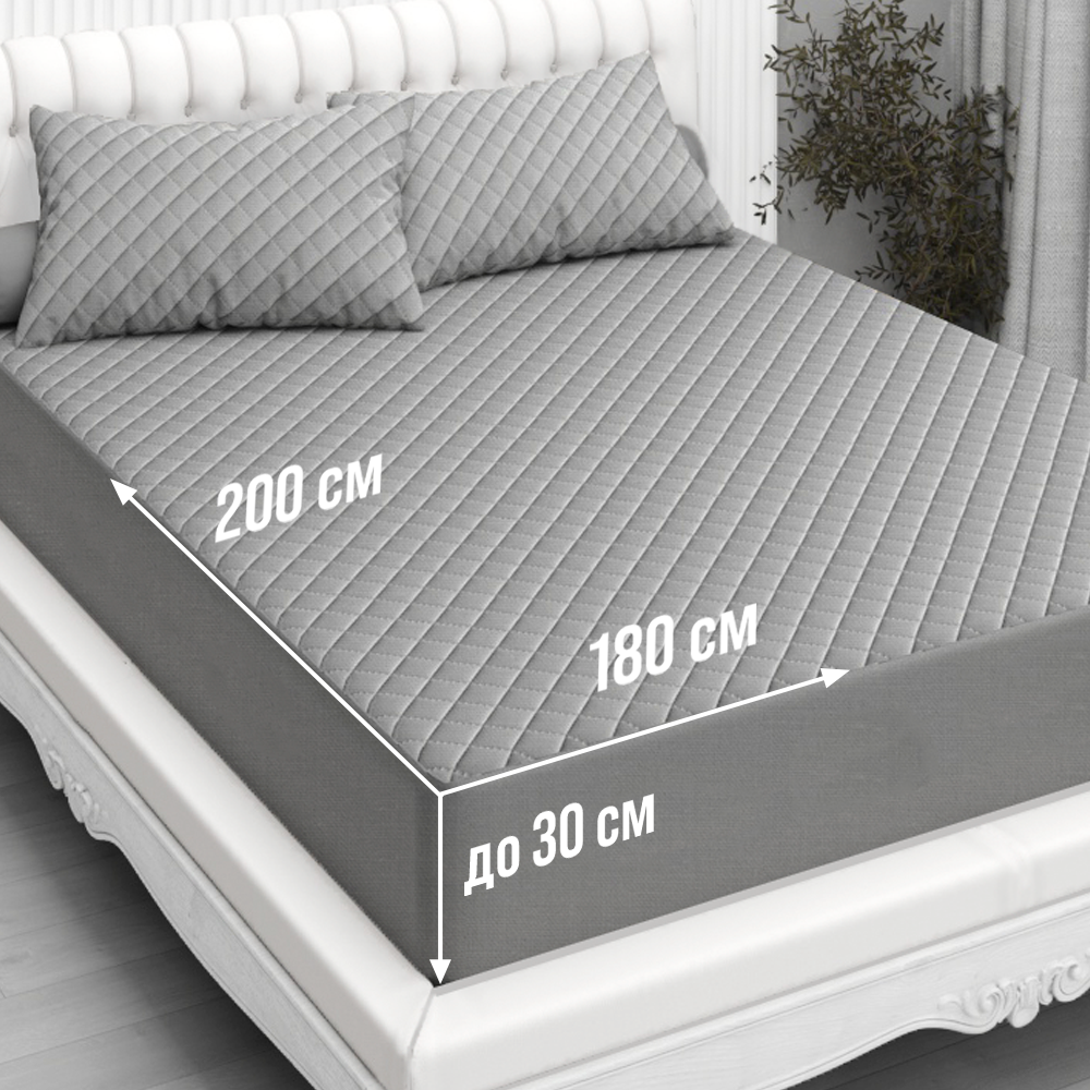 Экоториум Наматрасник 200х200 защитный, чехол на матрас стеганый на резинке с бортиками до 30 см, мягкий, Серый