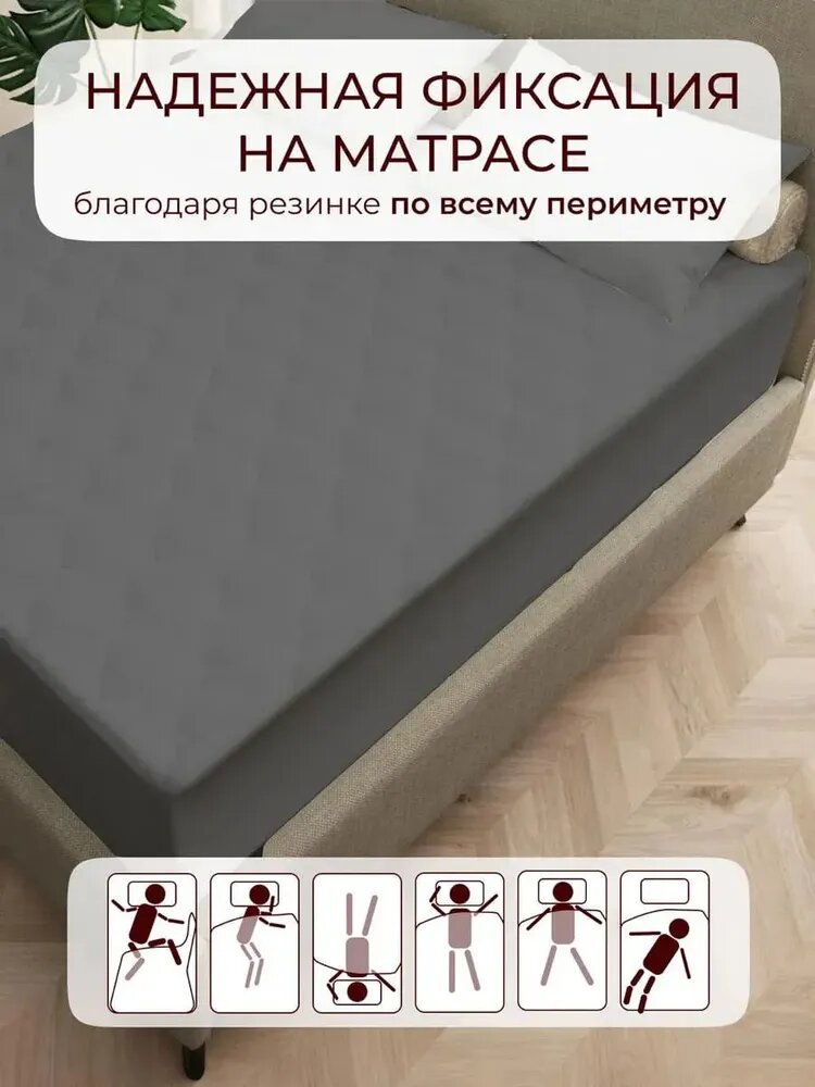 Экоториум Наматрасник 160x200 непромокаемый, чехол на матрас на резинке с бортами до 30 см, толстый, мягкий, Серый