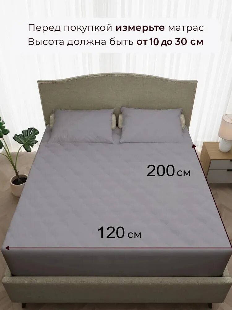 Экоториум Наматрасник 120х200 защитный, чехол на матрас стеганый на резинке с бортиками до 30 см, мягкий, Серый