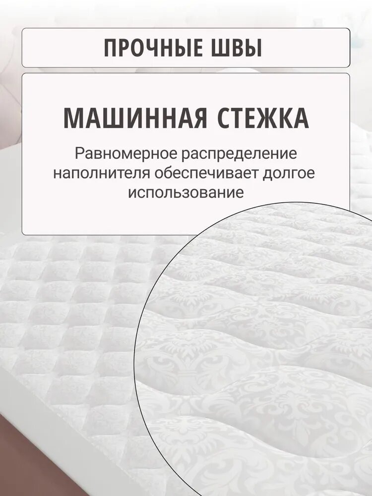 Наматрасник стёганный Асика / Наполнитель овечья шерсть / С резинками по углам - 120х200 см / Чехол на матрас