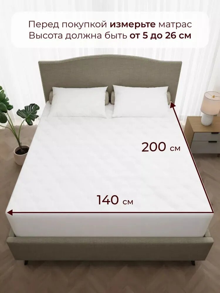 Экоториум Наматрасник 140x200 непромокаемый, чехол на матрас на резинке с бортами до 30 см, толстый, мягкий