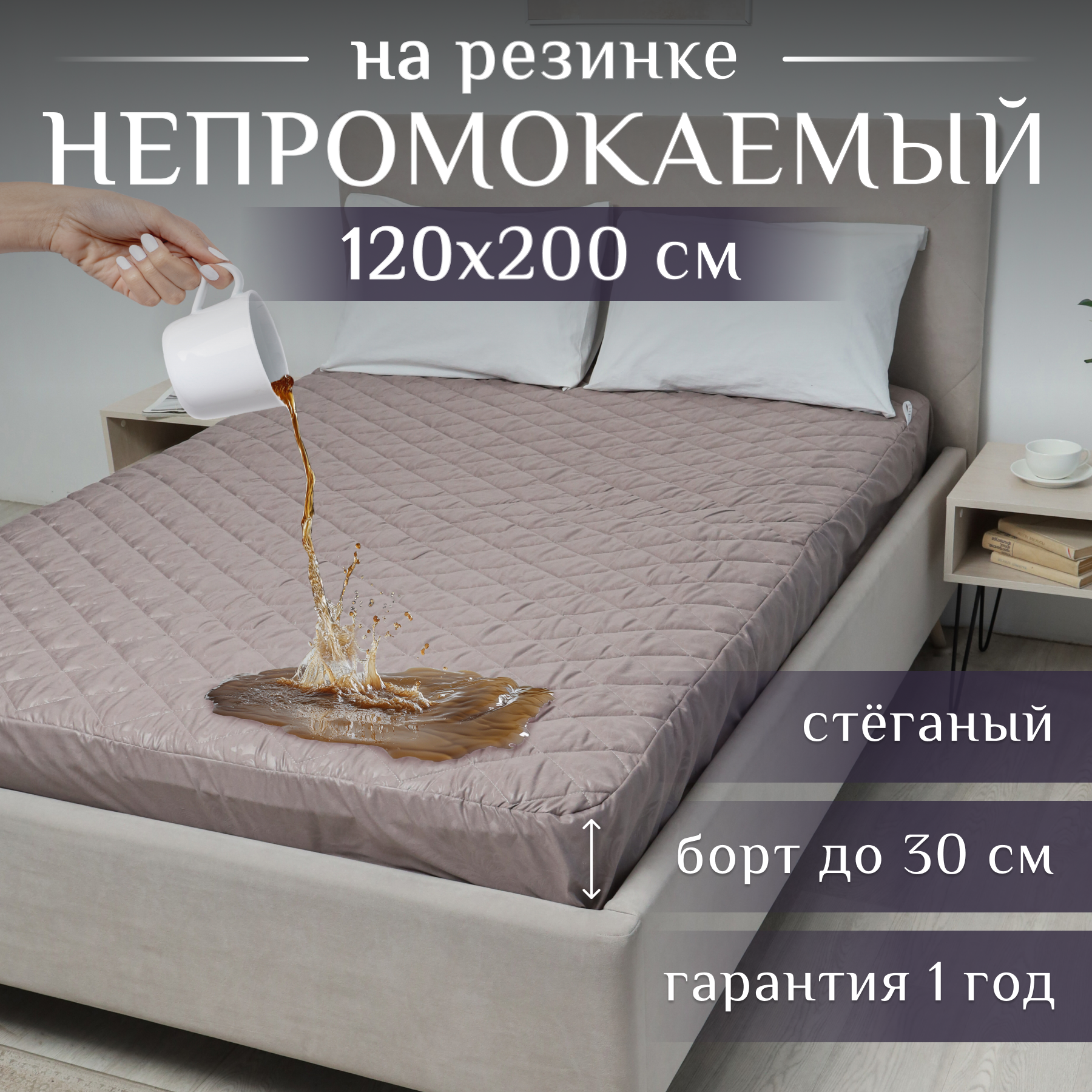 СохранитьЭкоториум Наматрасник 120х200 водонепроницаемый, чехол на матрас стеганый, на резинке с бортами до 30 см, Капучино интересное: