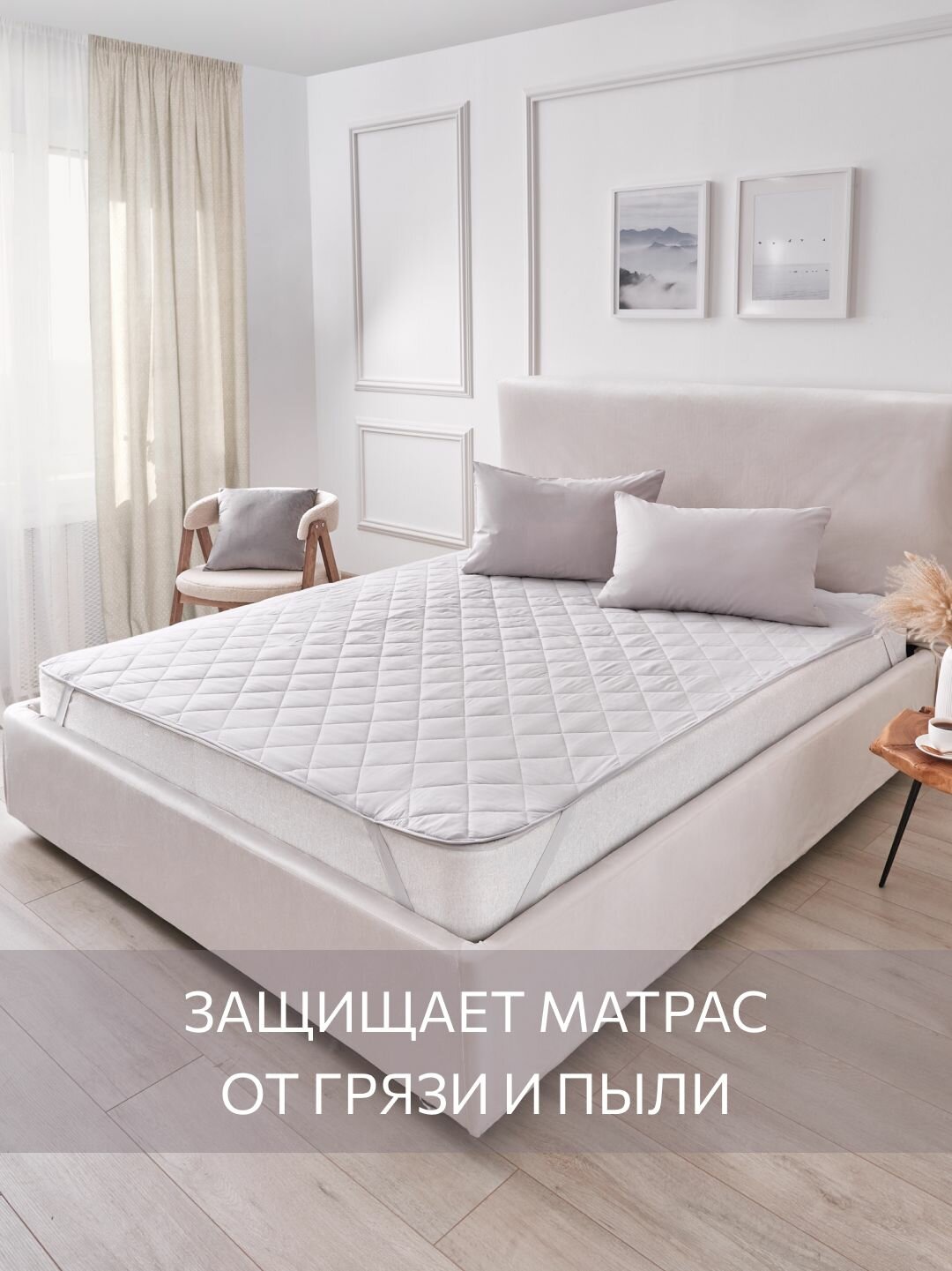 Наматрасник стёганный Асика / Наполнитель овечья шерсть / С резинками по углам - 120х200 см / Чехол на матрас