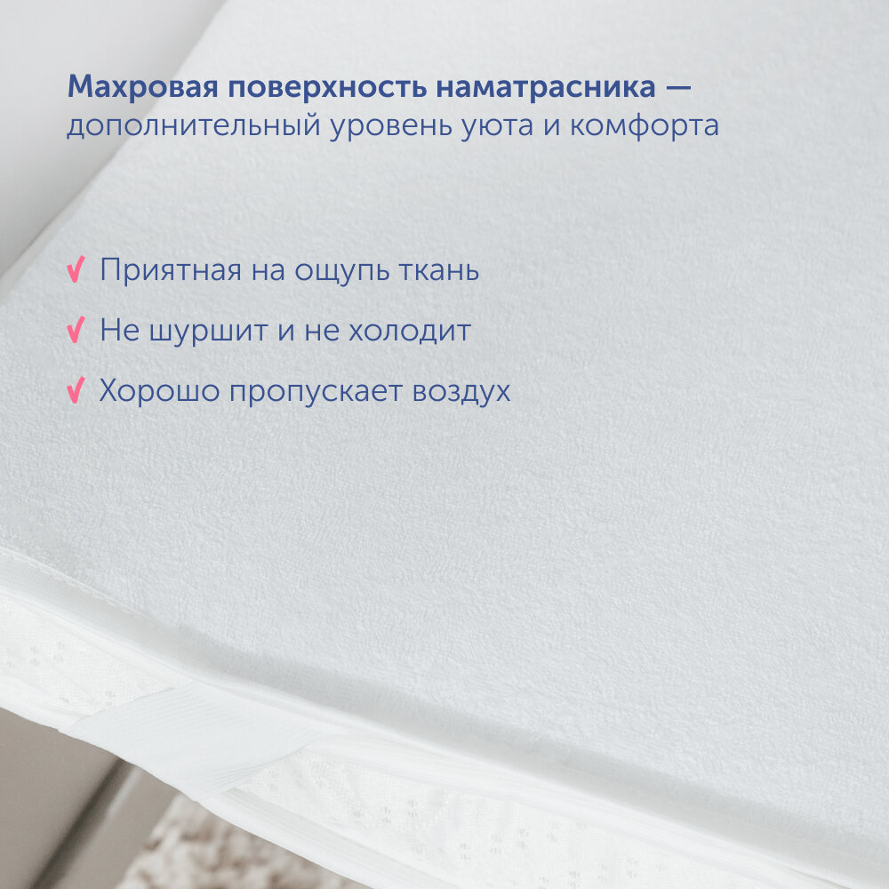Водонепроницаемый чехол на детский матрас buyson BuyJoy, 80x190 см, белый