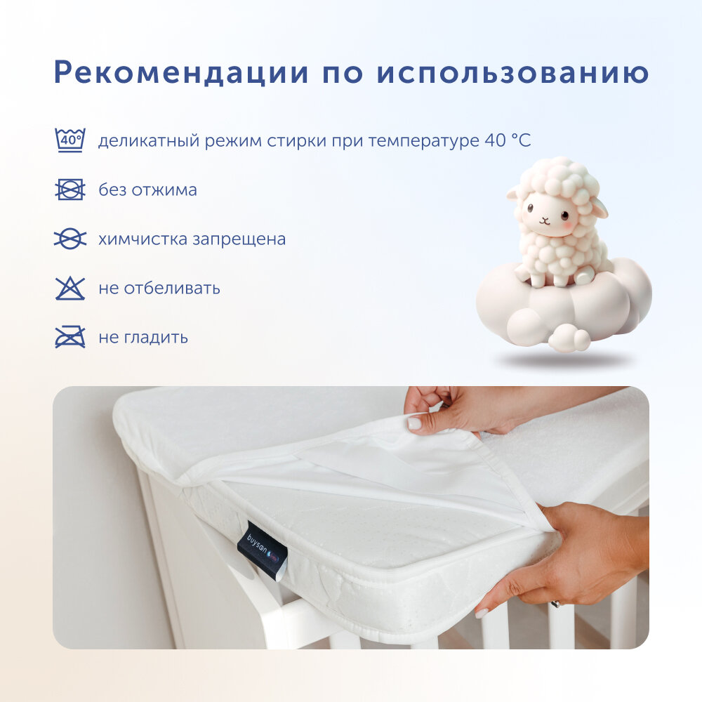 Водонепроницаемый чехол на детский матрас buyson BuyJoy, 65х125 см, белый