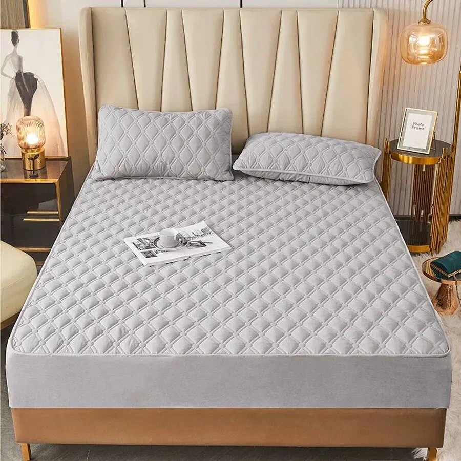 Наматрасник "Mency" 160х200 + 30 см стеганный с бортом на резинке по кругу без наволочек, серый