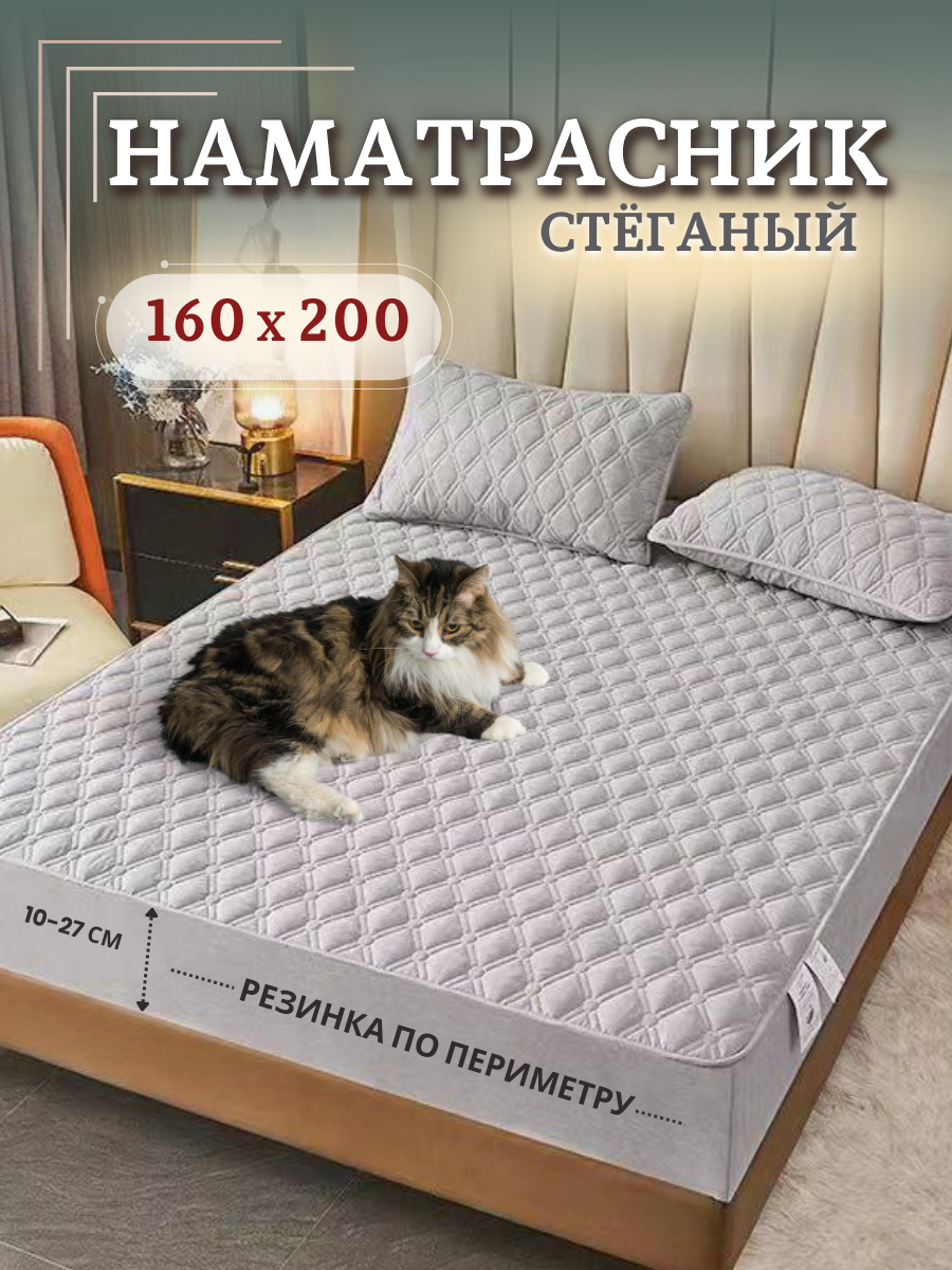 СохранитьНаматрасник 160x200, стеганый с бортом на резинке. Защитный чехол на матрас 160 200 см светло-серый интересное: