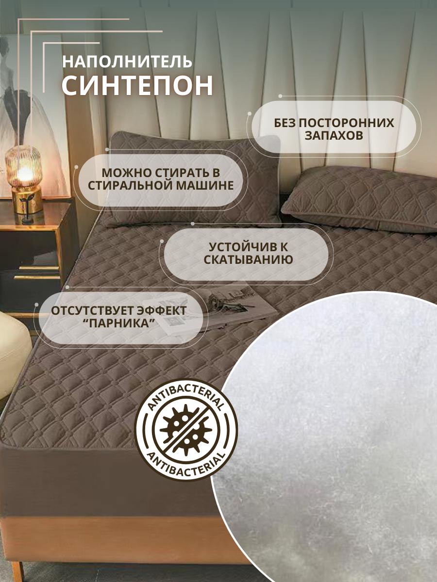 Наматрасник 160х200 стеганый с бортом, защитный чехол на матрас 160x200, коричневый интересное: