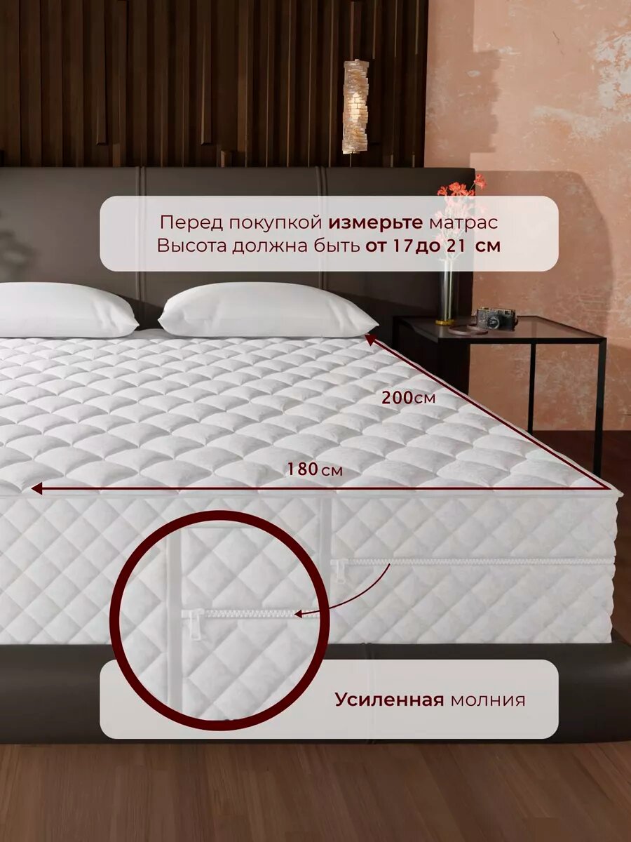 СохранитьНаматрасник непромокаемый 180х200, на молнии, с высокими бортиками 17-21 см, стеганый чехол на матрас, белый интересное: