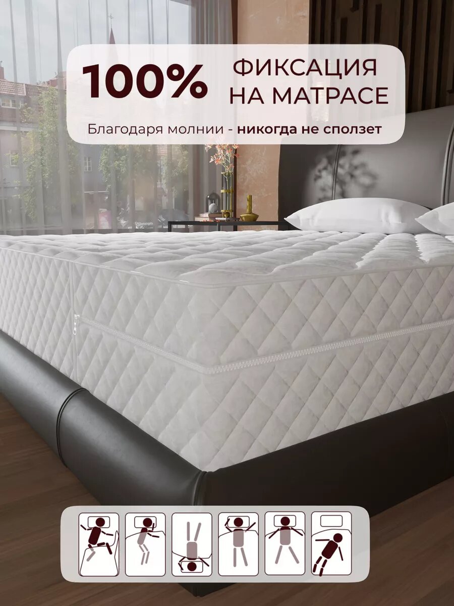 Наматрасник непромокаемый 180х200, на молнии, с высокими бортиками 17-21 см, стеганый чехол на матрас, белый